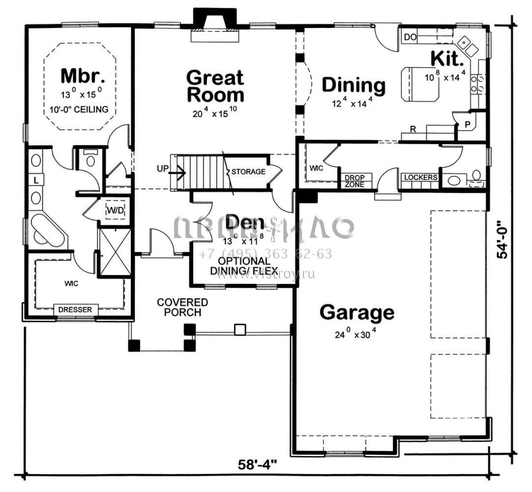S5-232 (402-01533) Это иностранный проект, для которого требуется адаптация под нормы, действующие в Российской Федерации. Вы видите проект дома в стиле Ранчо. В этом доме сочетаются черты сельской постройки и аскетичность лофта. Внутри жильцы смогут проводить время с максимальным комфортом. Обратим внимание, что сейчас на планировках все размеры представлены в футах. Для перевода в метры вам необходимо значение в футах умножить на 0,3048.