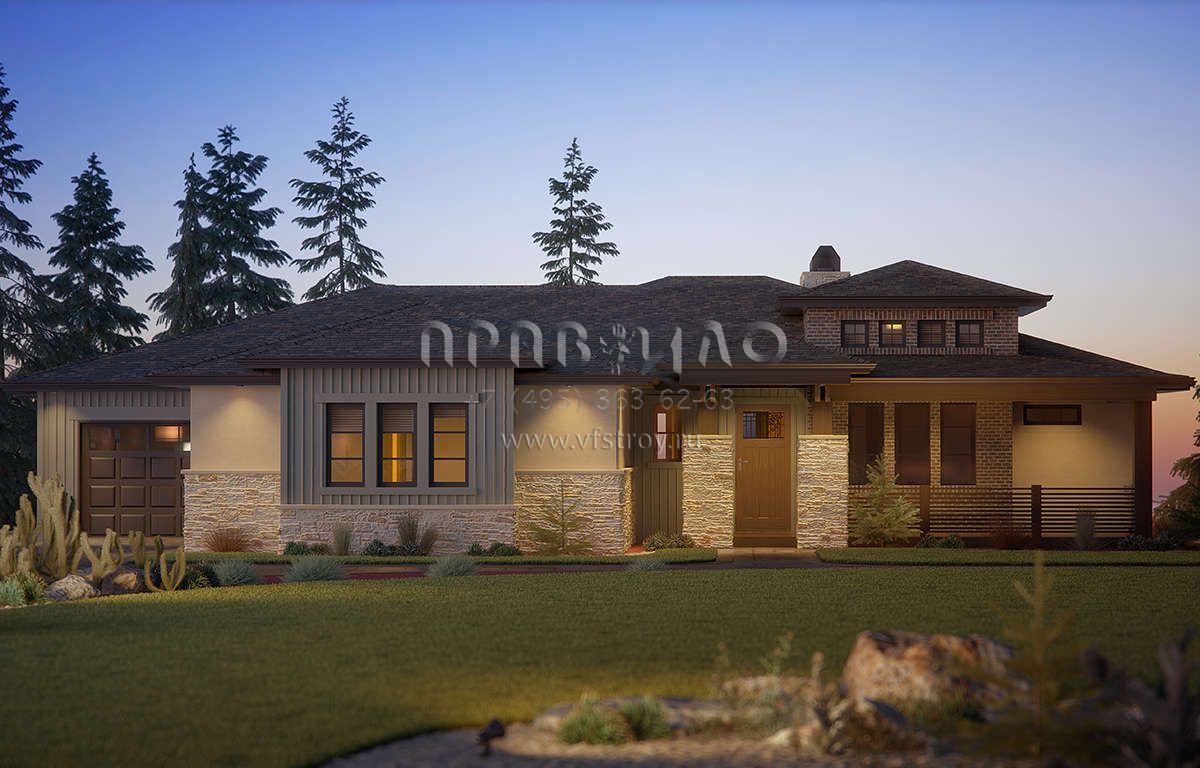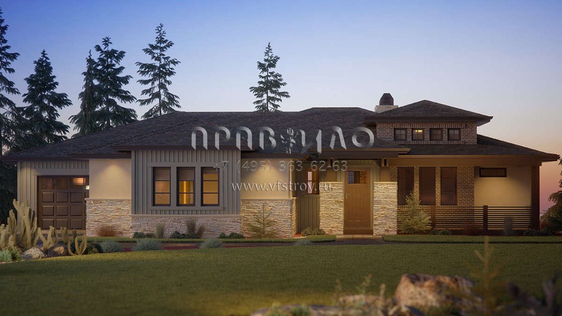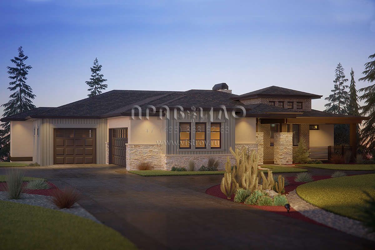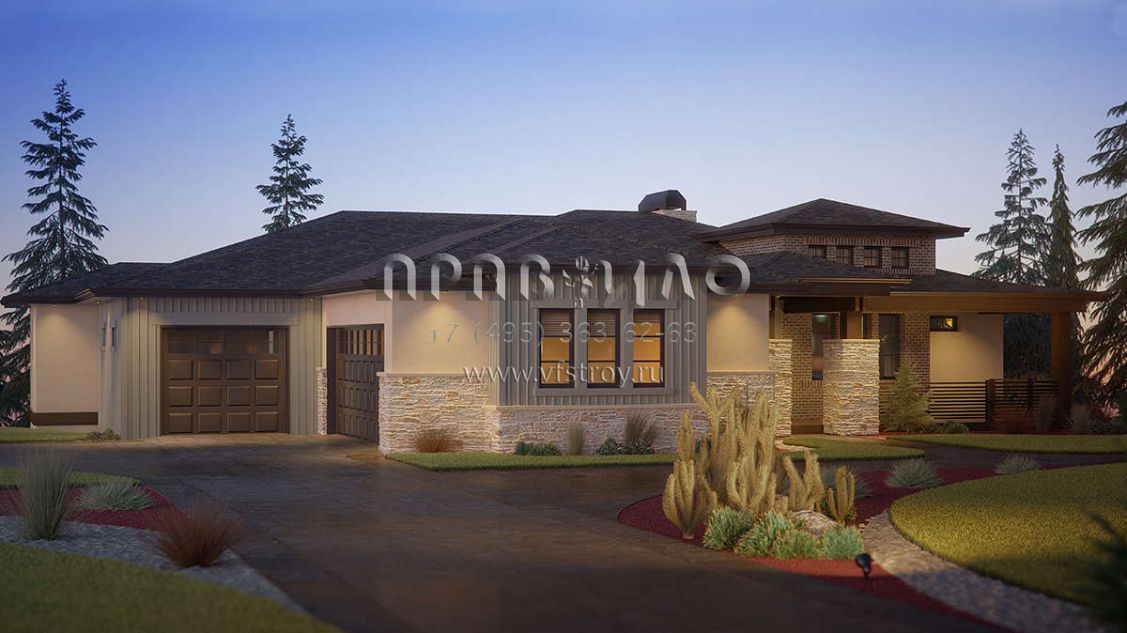 Проект одноэтажного дома с гаражом на три и более машин в стиле Райт S5-232 (5631-00116)