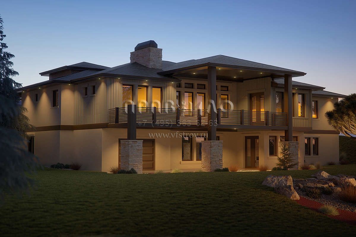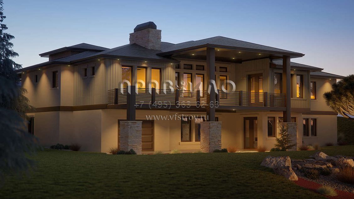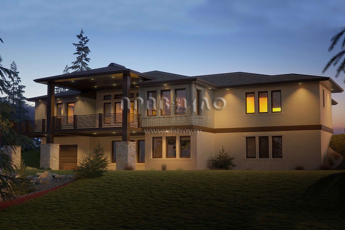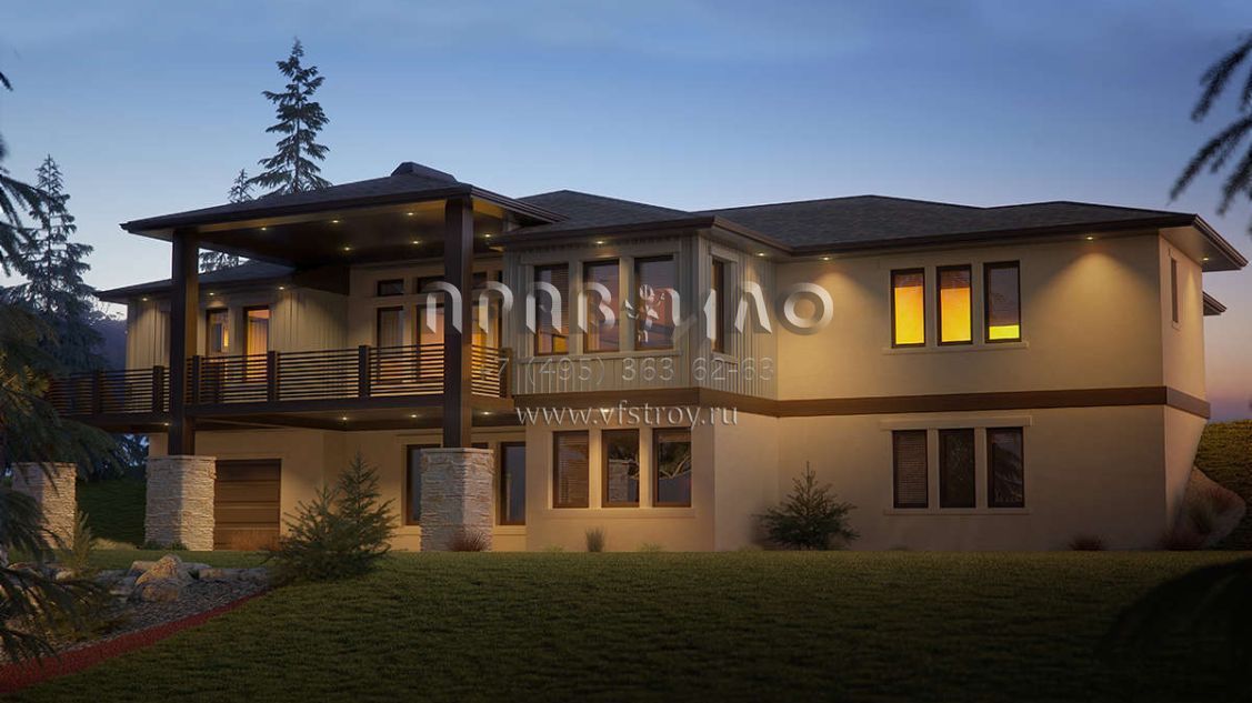 Проект одноэтажного дома с гаражом на три и более машин в стиле Райт S5-232 (5631-00116)