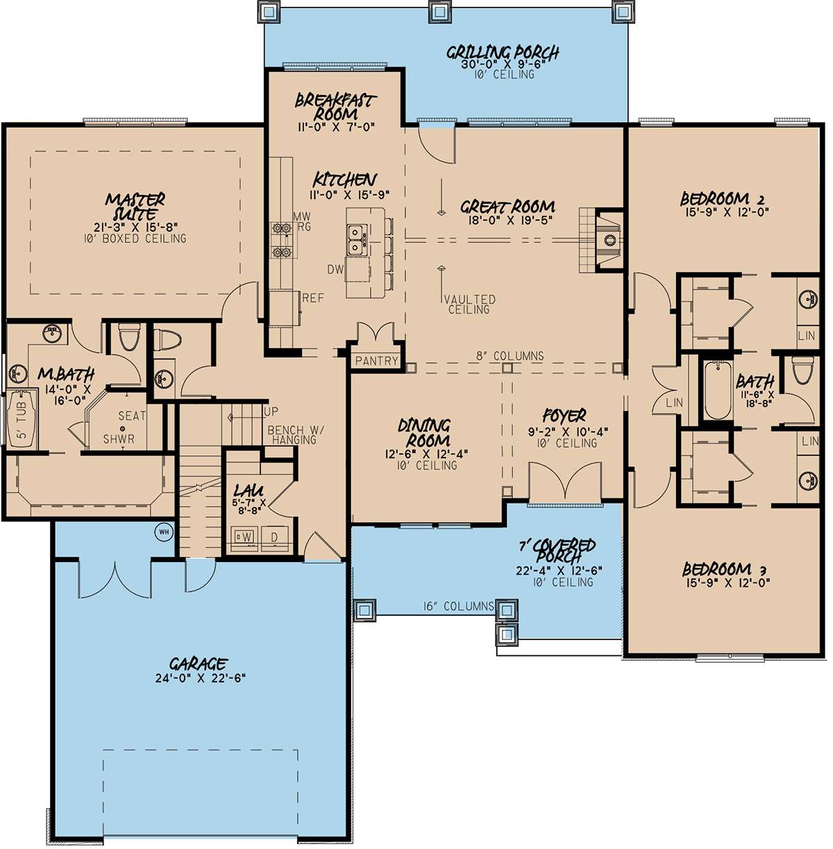 Проект одноэтажного дома с гаражом на две машины в английском стиле S5-232 (8318-00099)