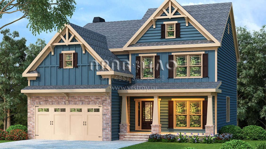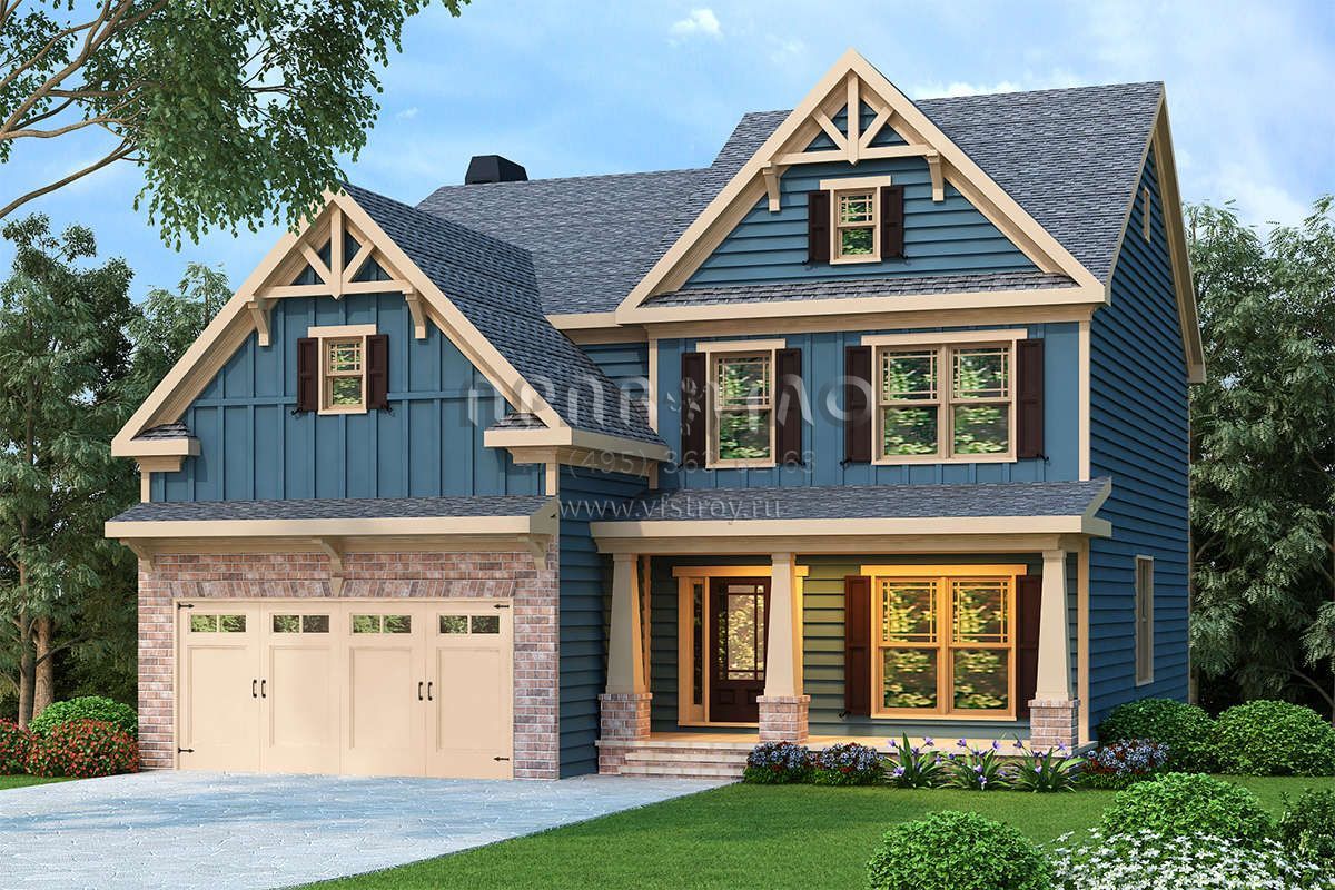 Проект двухэтажного дома с гаражом на две машины в американском стиле S5-233 (009-00102)