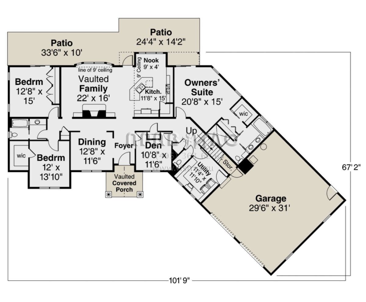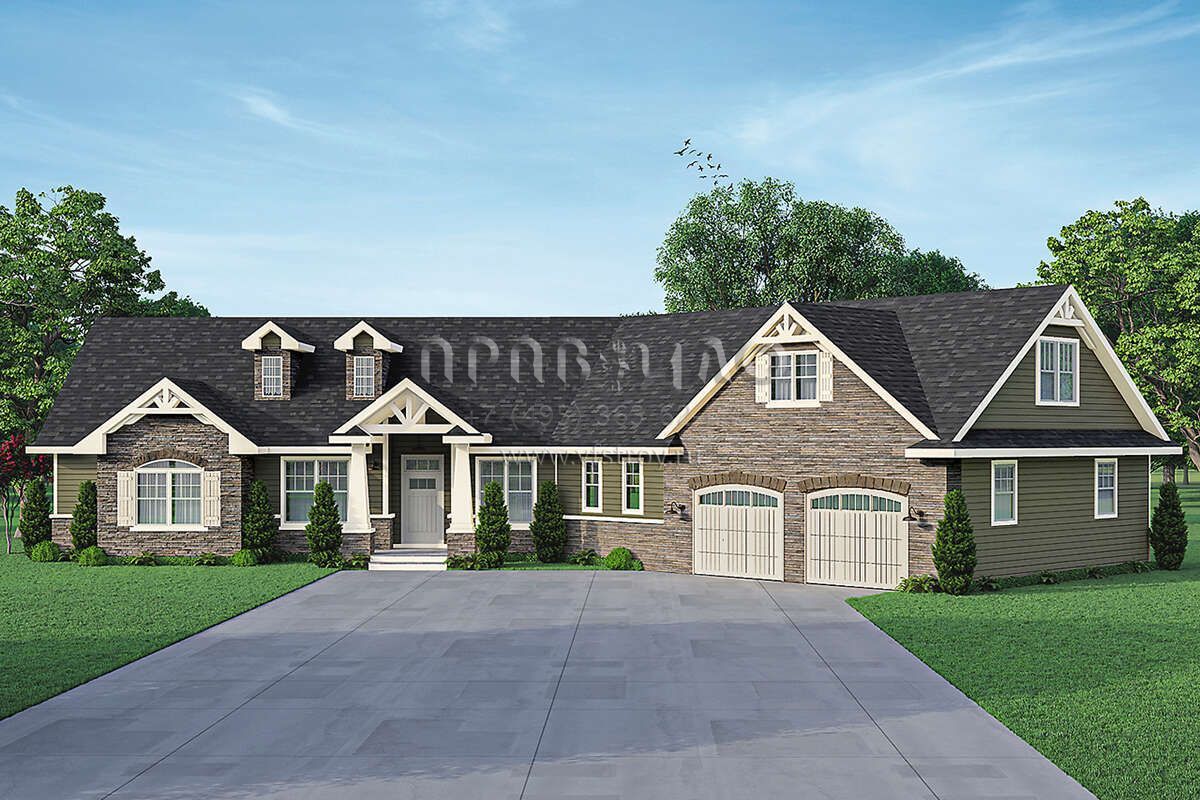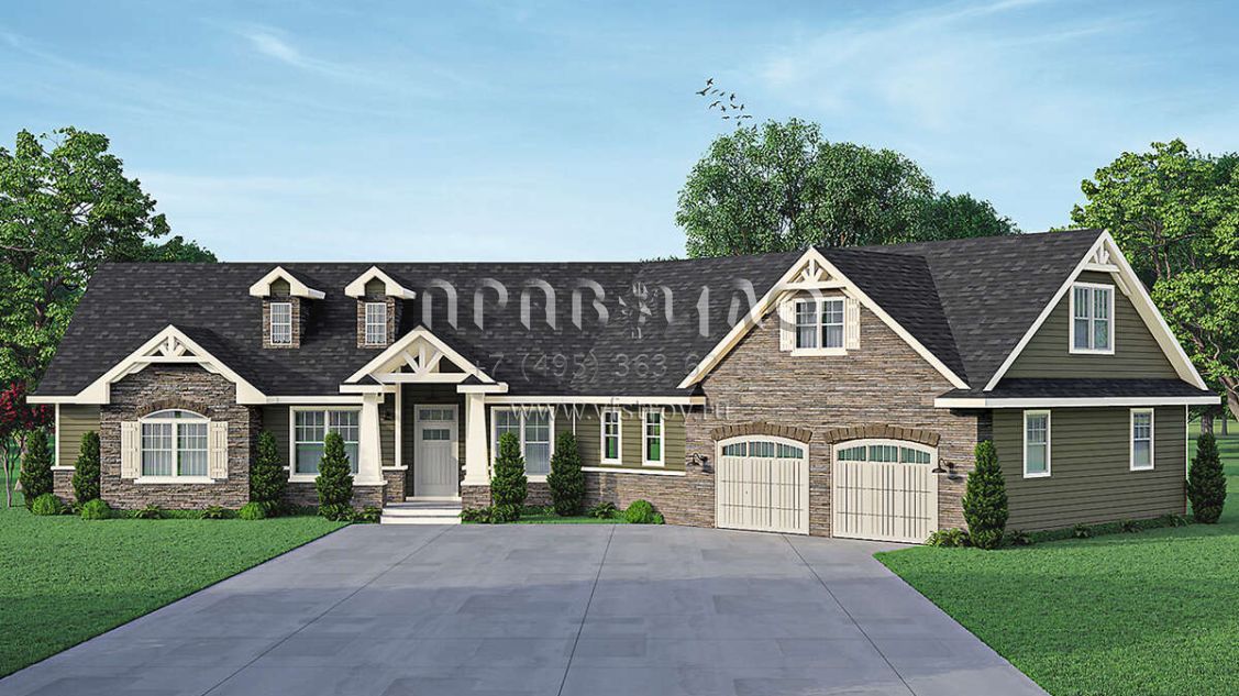 Проект одноэтажного дома с гаражом на две машины в американском стиле S5-233 (035-00949)