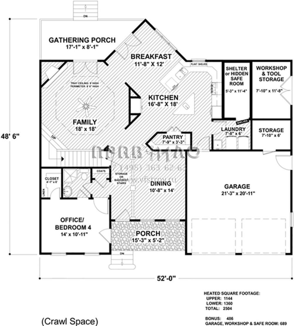 S5-233 (036-00248) Это иностранный проект, для которого требуется адаптация под нормы, действующие в Российской Федерации. Вы видите проект дома в американском стиле. В этом доме сочетаются черты сельской постройки и аскетичность лофта. Внутри жильцы смогут проводить время с максимальным комфортом. Обратим внимание, что сейчас на планировках все размеры представлены в футах. Для перевода в метры вам необходимо значение в футах умножить на 0,3048.