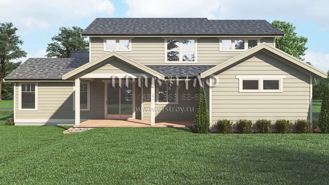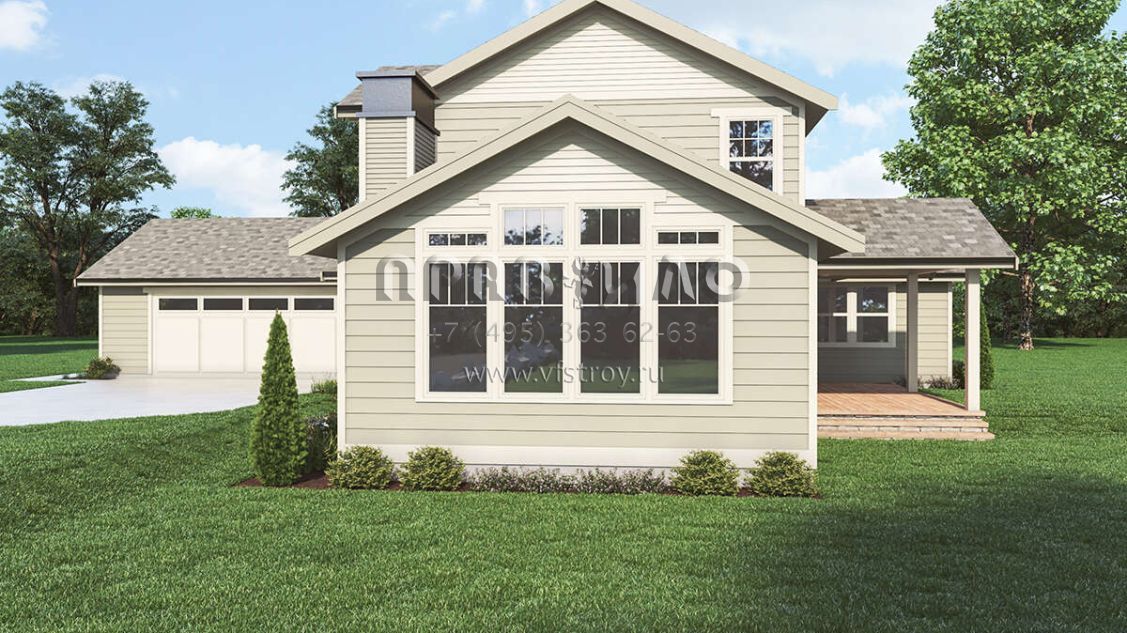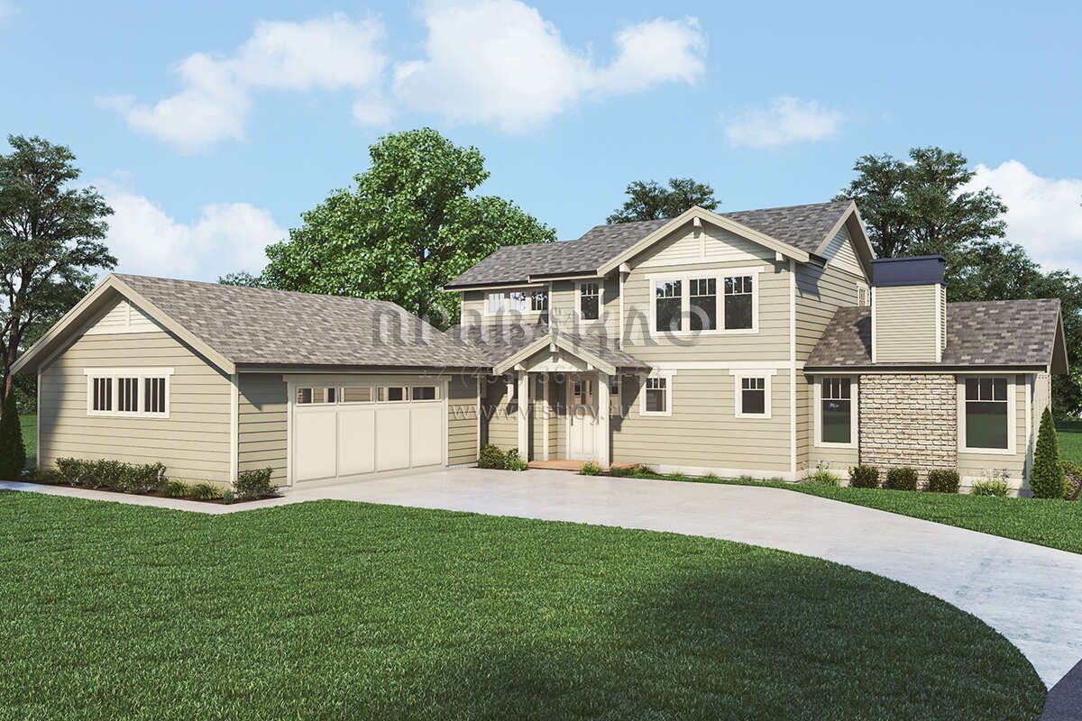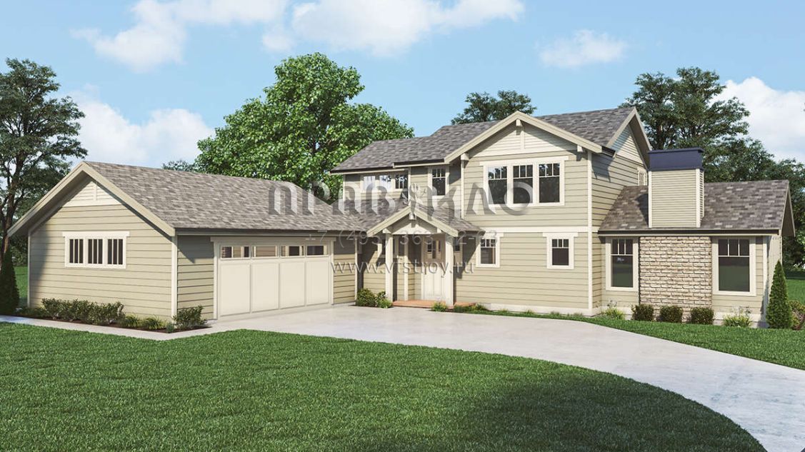 Проект двухэтажного дома с гаражом на две машины в стиле Ранчо S5-233 (2464-00102)