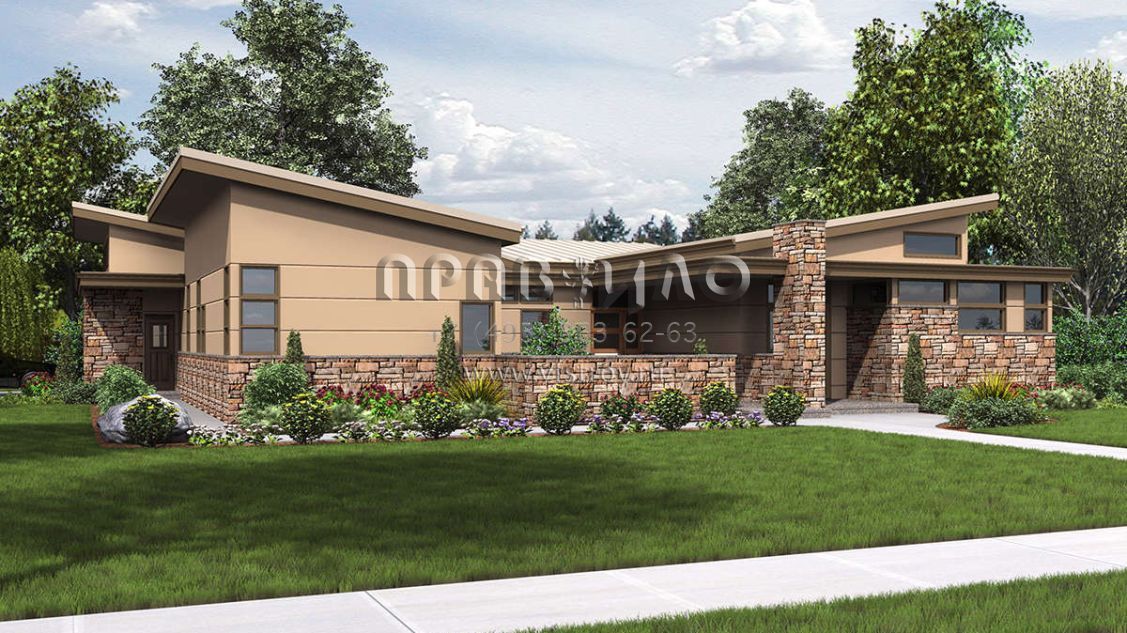 Проект одноэтажного дома с гаражом на две машины в современном стиле S5-233 (2559-00697)