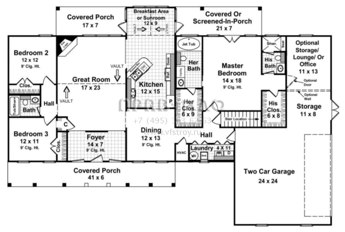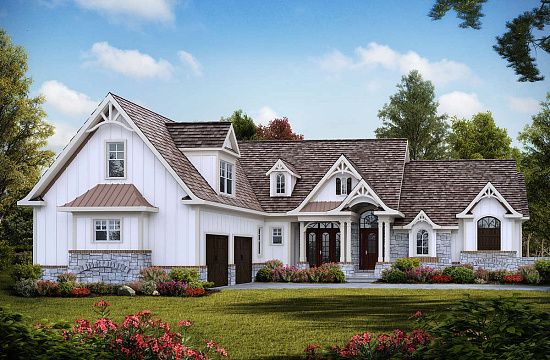 Проект одноэтажного дома с гаражом на две машины в стиле Ранчо S5-233 (348-00061)