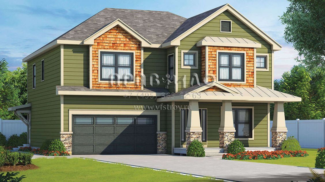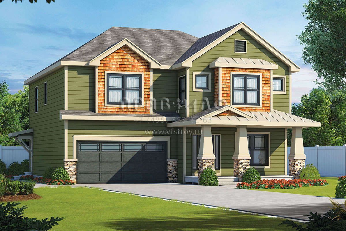 Проект двухэтажного дома с гаражом на две машины в американском стиле S5-233 (402-01570)