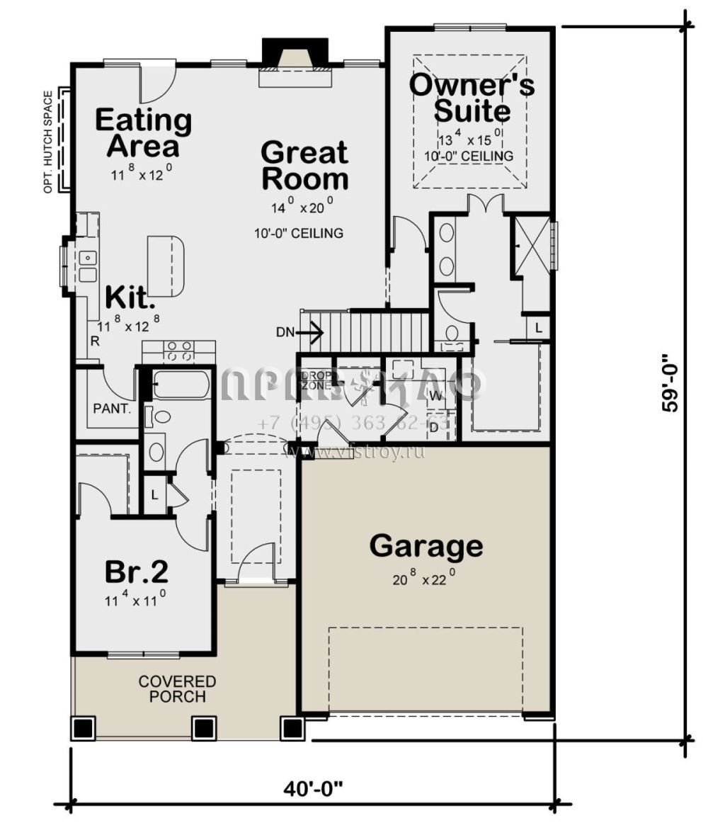Проект одноэтажного дома с гаражом на две машины в американском стиле S5-233 (402-01776)