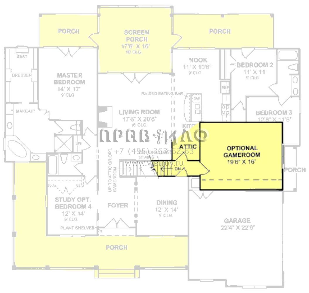 Поскольку этот проект разрабатывался иностранными архитекторами, для строительства дома требуется переработка проекта под действующие в России нормы. Данные визуализации проекта представлены для ознакомления с концепцией проекта. Проект разработан американским архитектурным бюро и представлен America's Best House Plans.