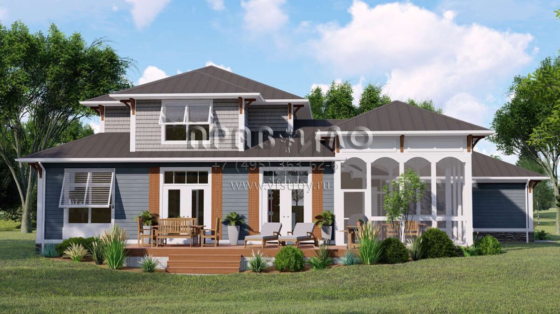 Поскольку этот проект разрабатывался иностранными архитекторами, для строительства дома требуется переработка проекта под действующие в России нормы. Данные визуализации проекта представлены для ознакомления с концепцией проекта. Проект разработан американским архитектурным бюро и представлен America's Best House Plans.