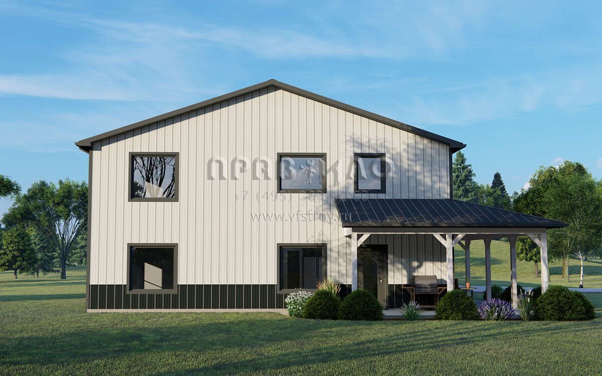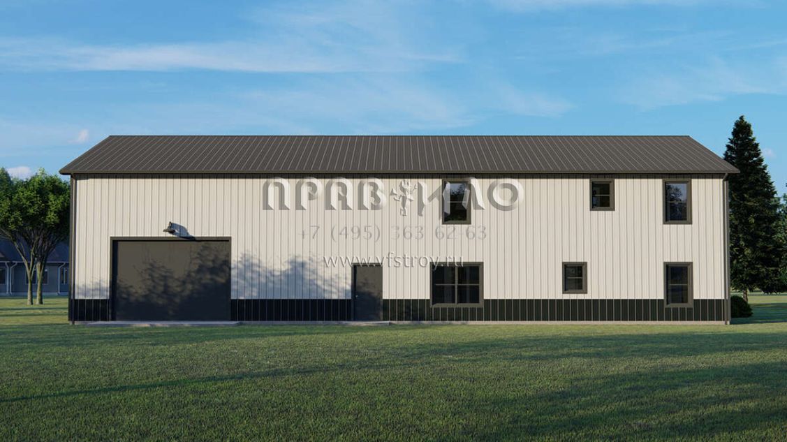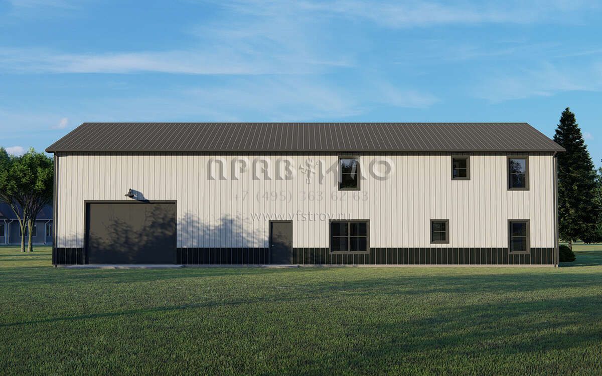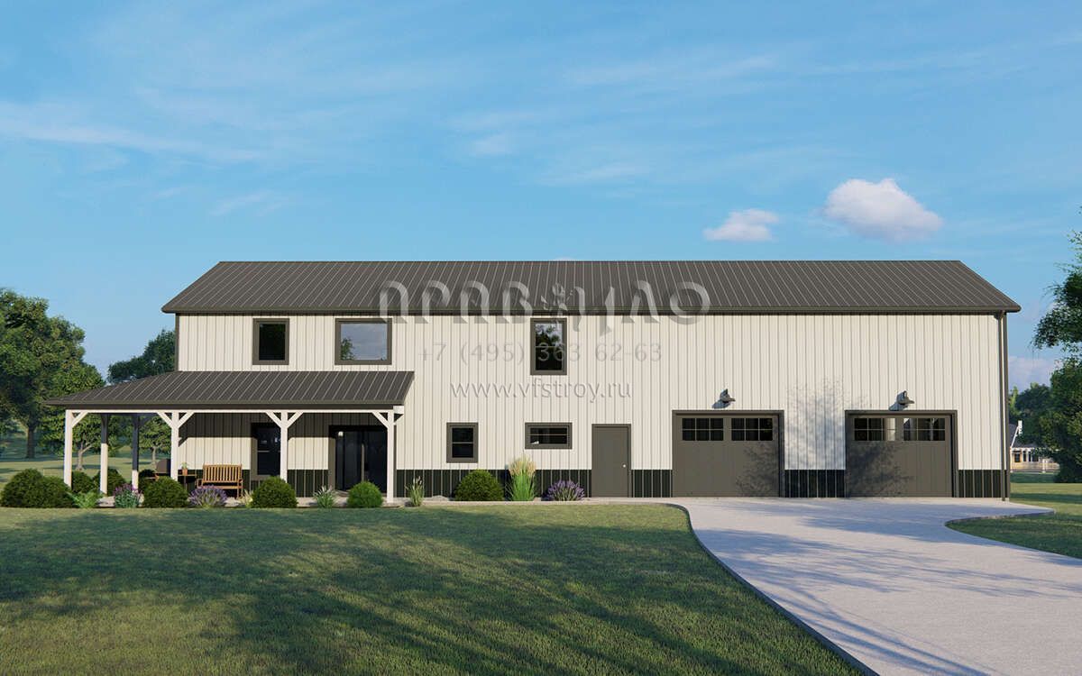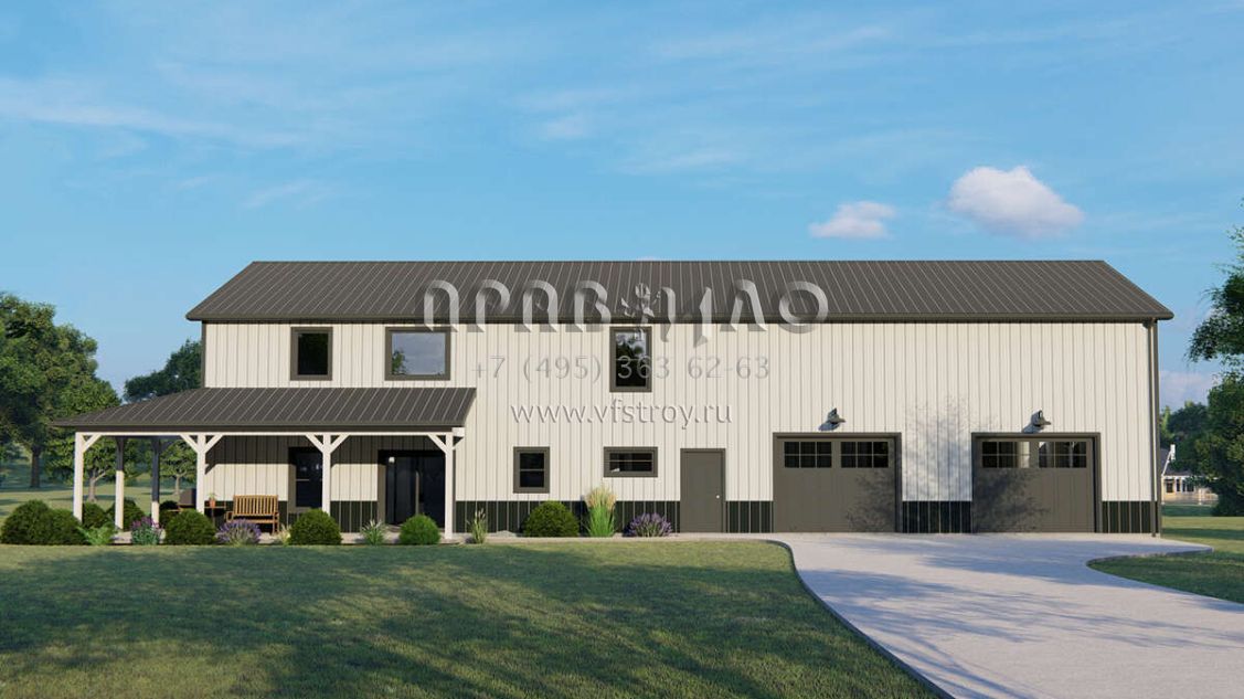 Проект двухэтажного дома с гаражом на три и более машин в стиле БарнХаус S5-233 (5032-00242)