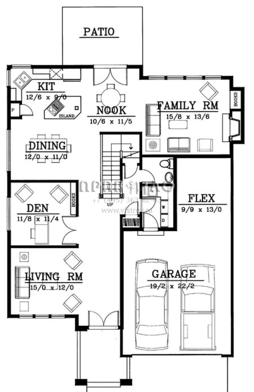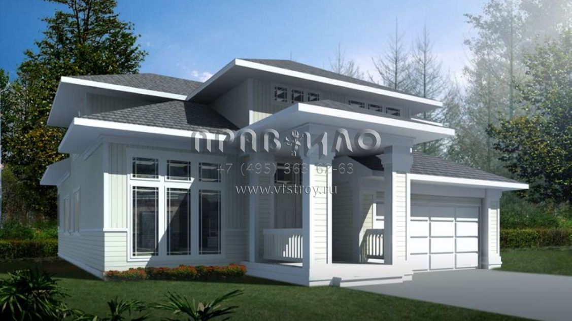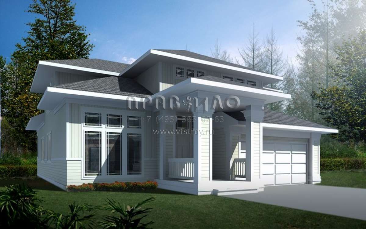 Проект двухэтажного дома с гаражом на три и более машин в стиле Райт S5-233 (692-00085)