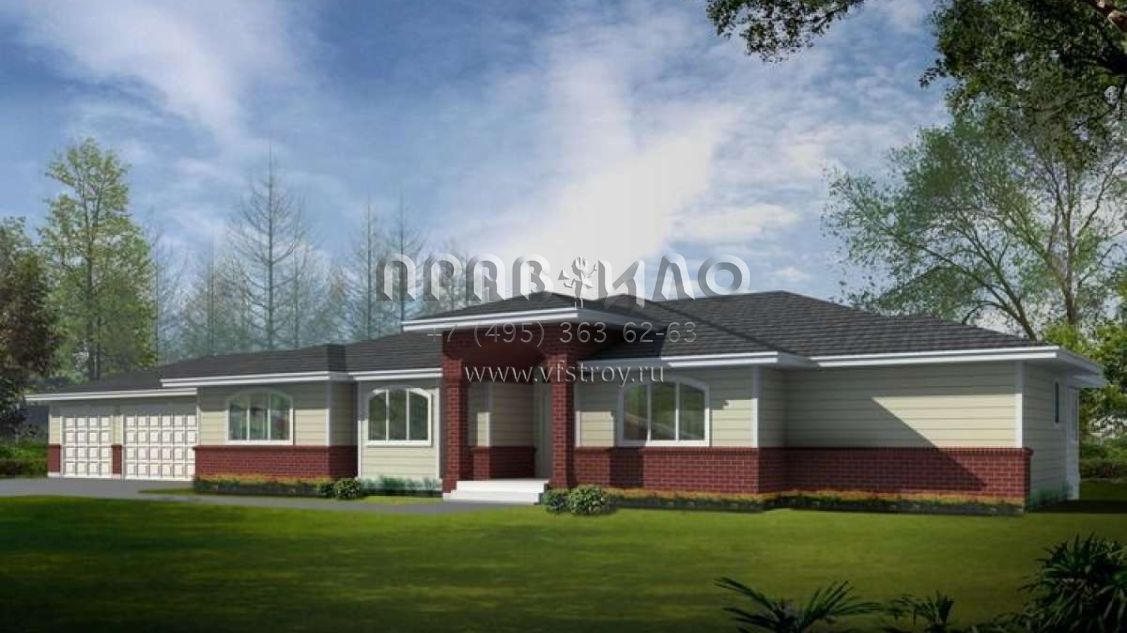 Проект одноэтажного дома с гаражом на три и более машин в стиле Ранчо S5-233 (692-00135)