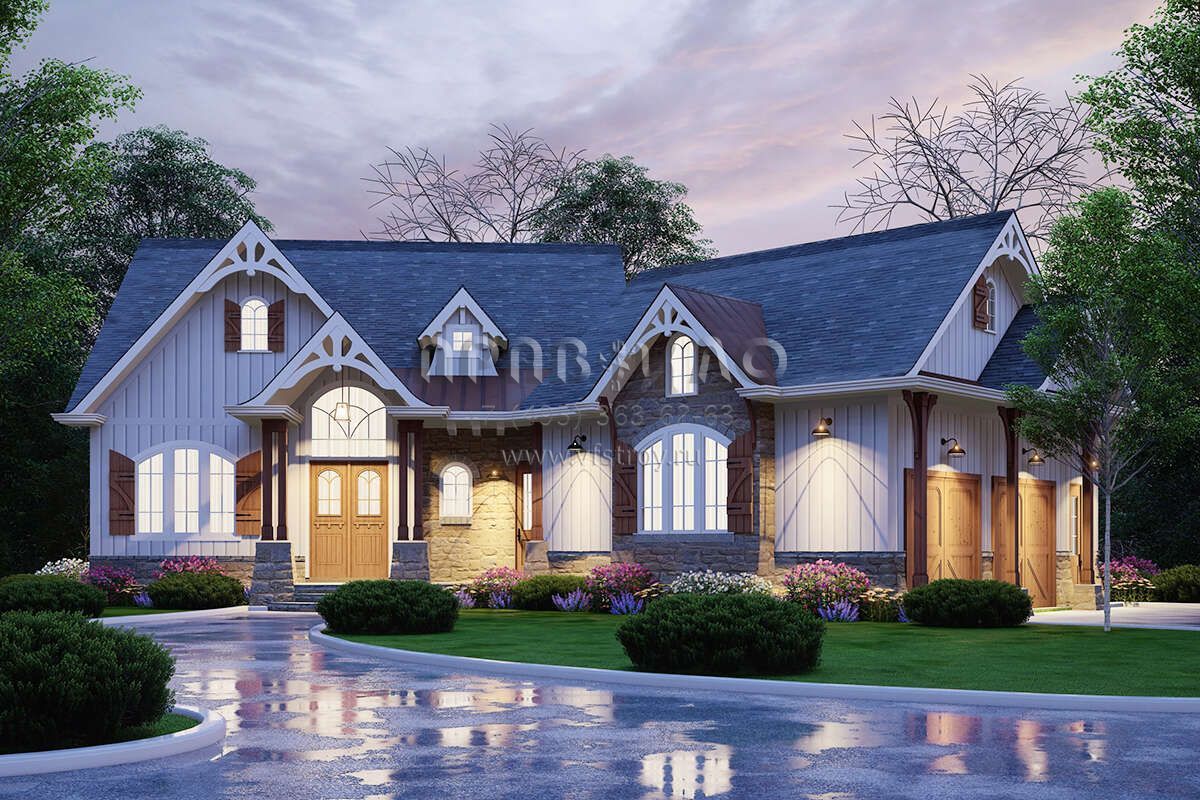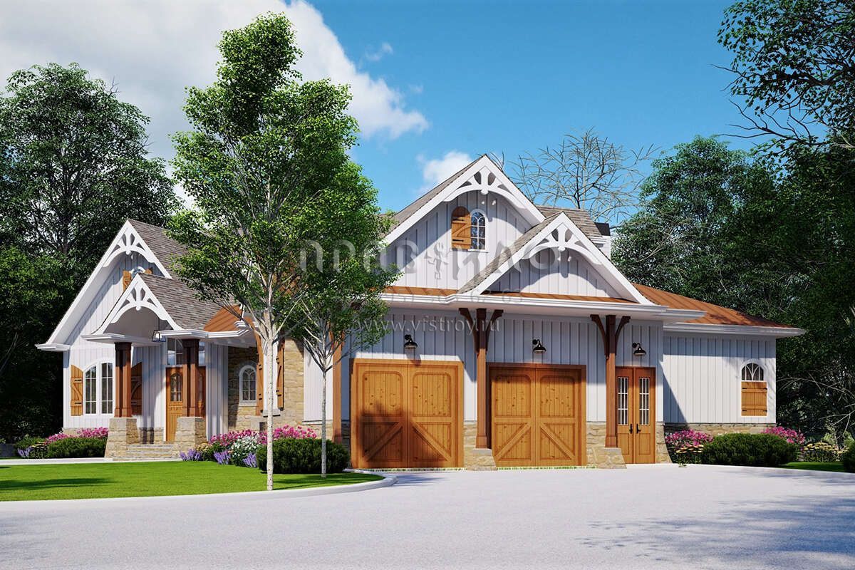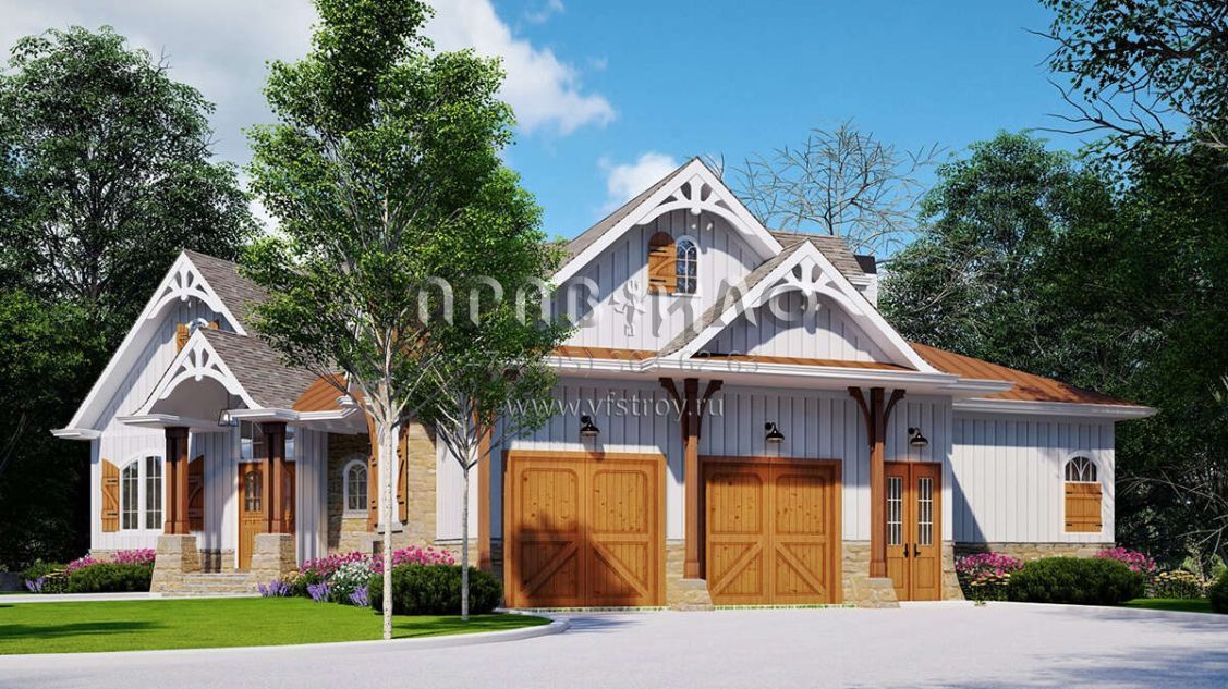 Проект одноэтажного дома с гаражом на две машины в стиле Шале S5-233 (699-00037)