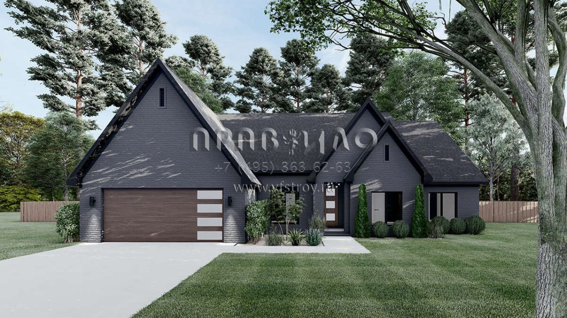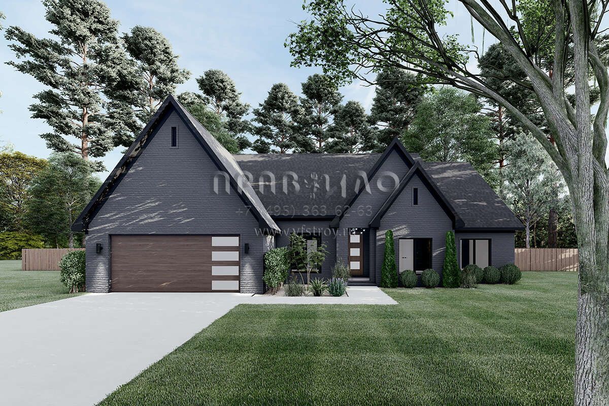 Большая площадь участка позволяет выбрать одноэтажный проект дома, особенно если в семье есть пожилые люди, инвалиды или маленькие дети.
