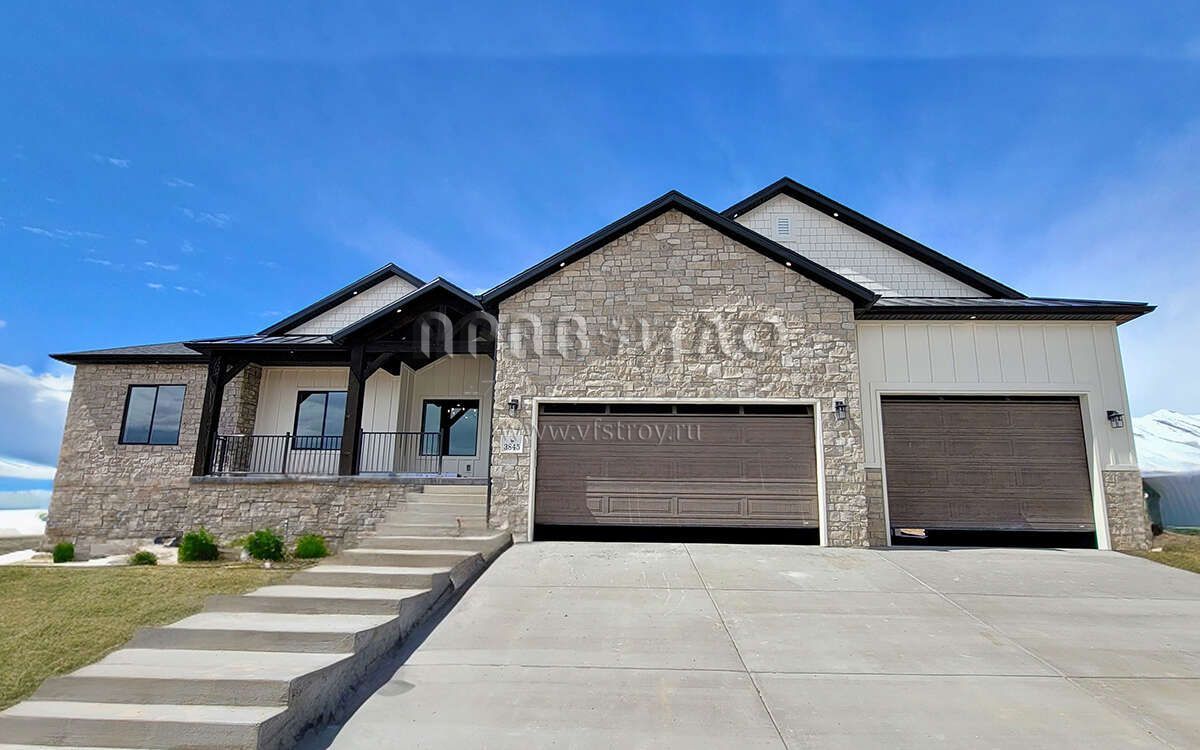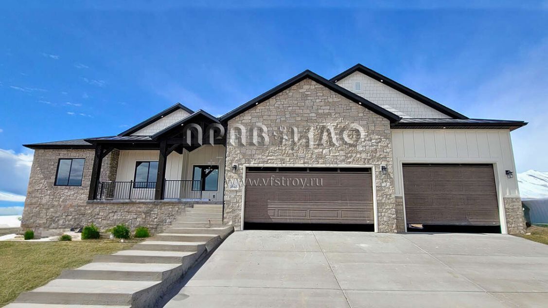 Проект одноэтажного дома с гаражом на три и более машин в американском стиле S5-233 (8768-00131)