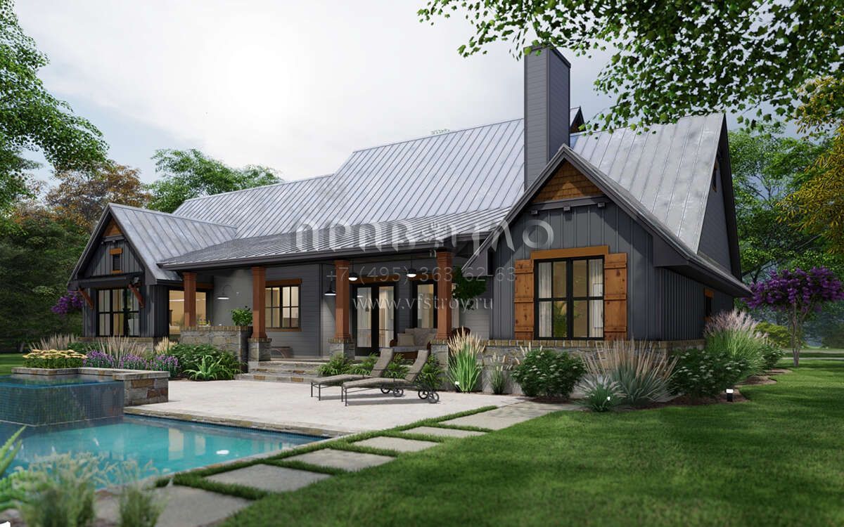 Проект одноэтажного дома с гаражом на две машины в американском стиле S5-233 (9401-00118)