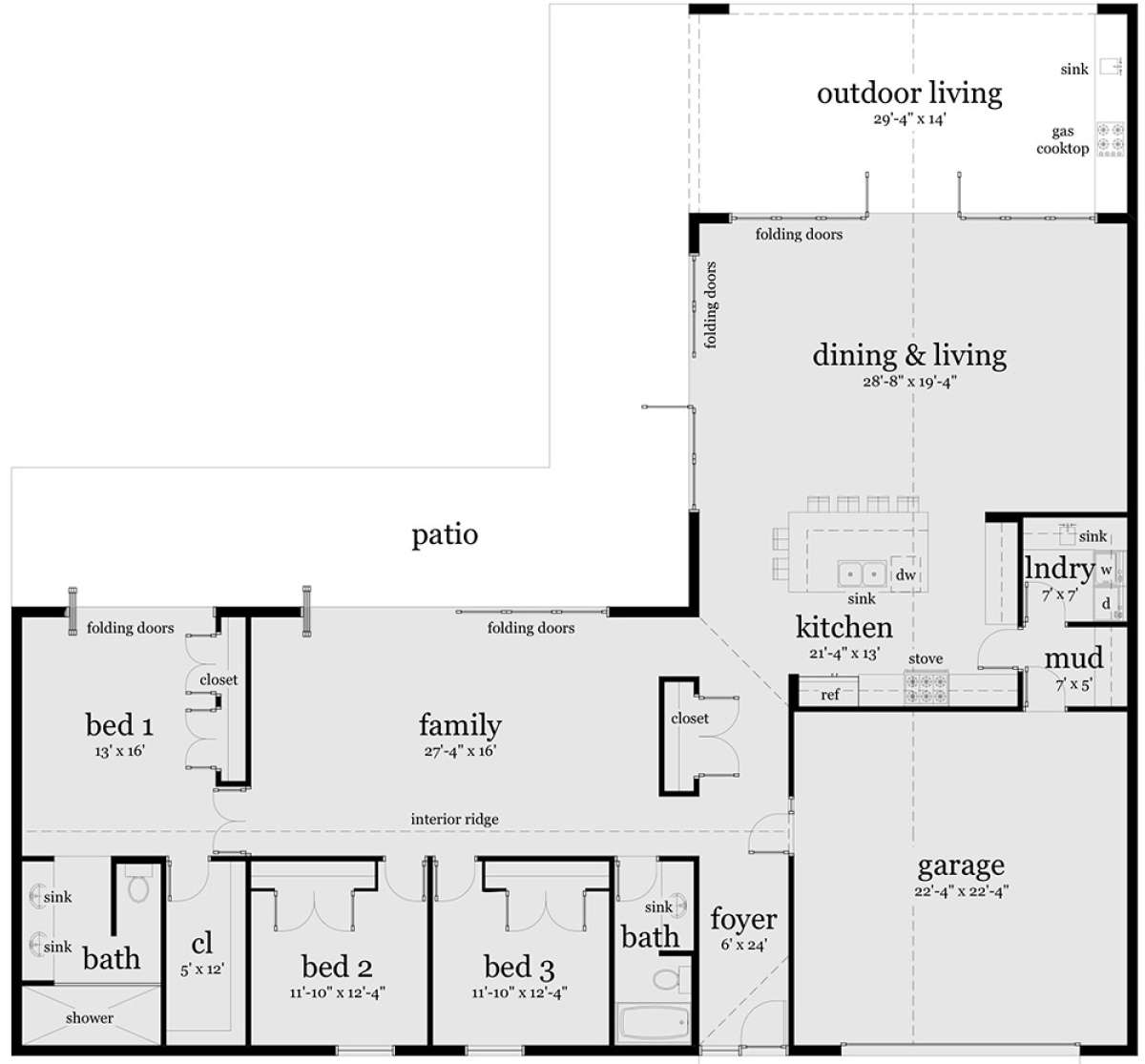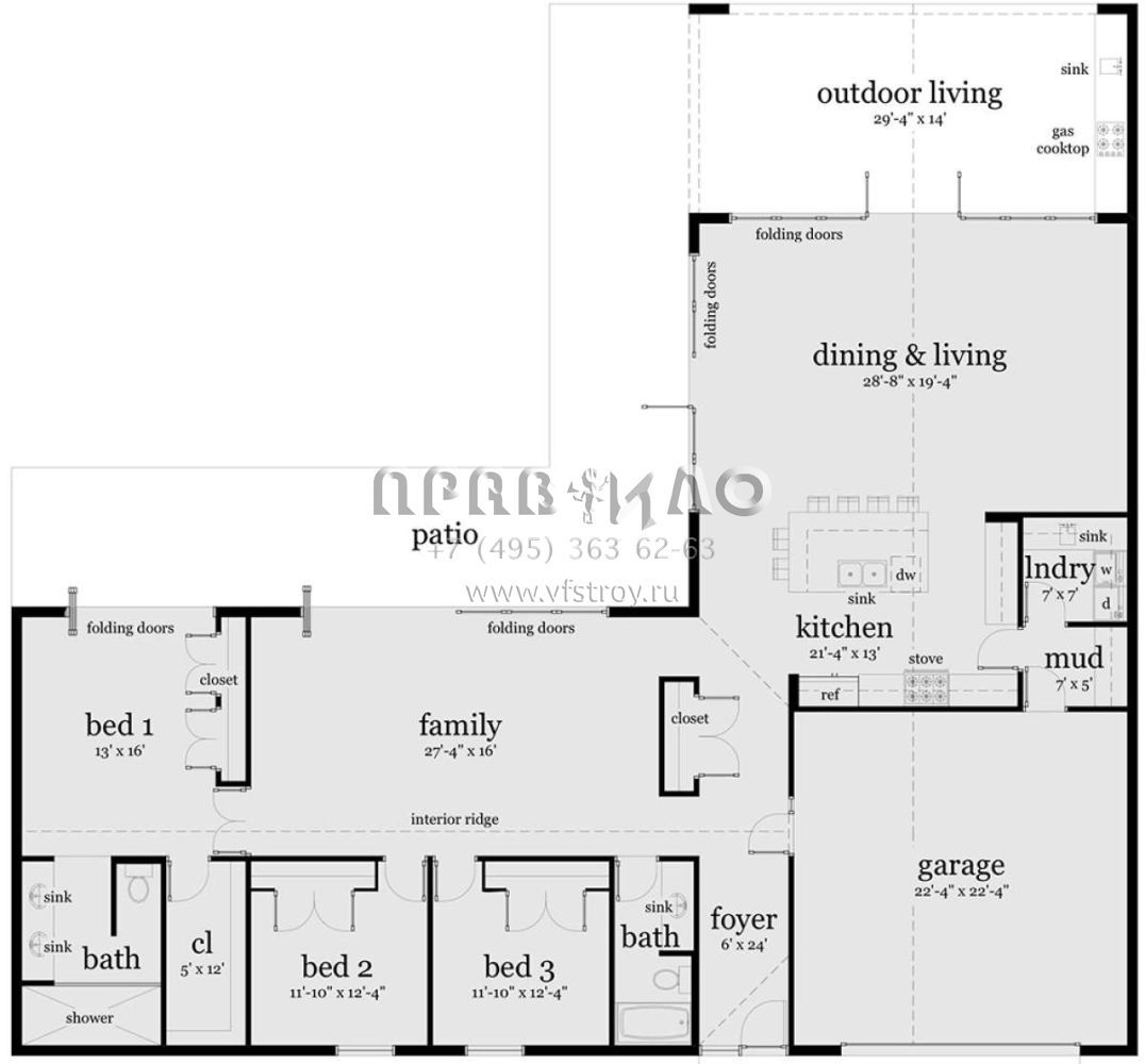 Проект одноэтажного дома с гаражом на две машины в стиле Ранчо S5-234 (028-00142)
