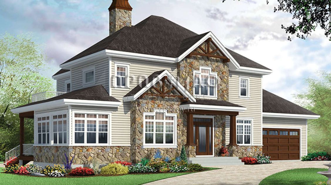 Проект двухэтажного дома с гаражом на две машины в американском стиле S5-234 (034-01108)