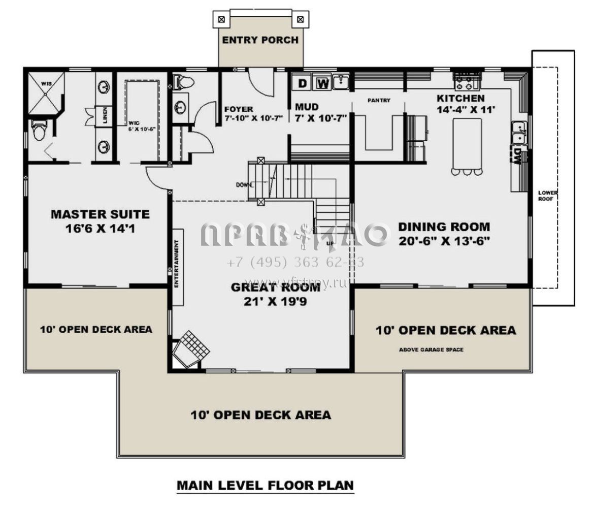 S5-234 (039-00721) Это иностранный проект, для которого требуется адаптация под нормы, действующие в Российской Федерации. Вы видите проект дома в стиле Шале. В этом доме сочетаются черты сельской постройки и аскетичность лофта. Внутри жильцы смогут проводить время с максимальным комфортом. Обратим внимание, что сейчас на планировках все размеры представлены в футах. Для перевода в метры вам необходимо значение в футах умножить на 0,3048.