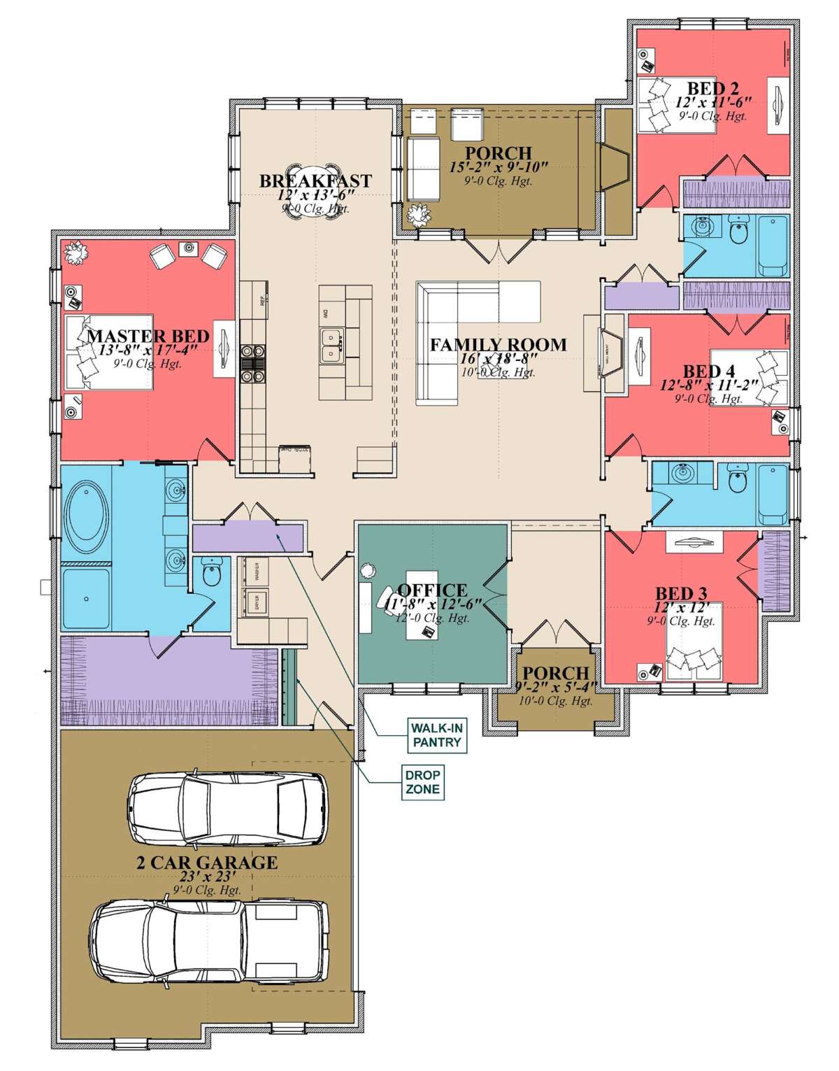 Проект одноэтажного дома с гаражом на две машины в стиле Ранчо S5-234 (1070-00275)