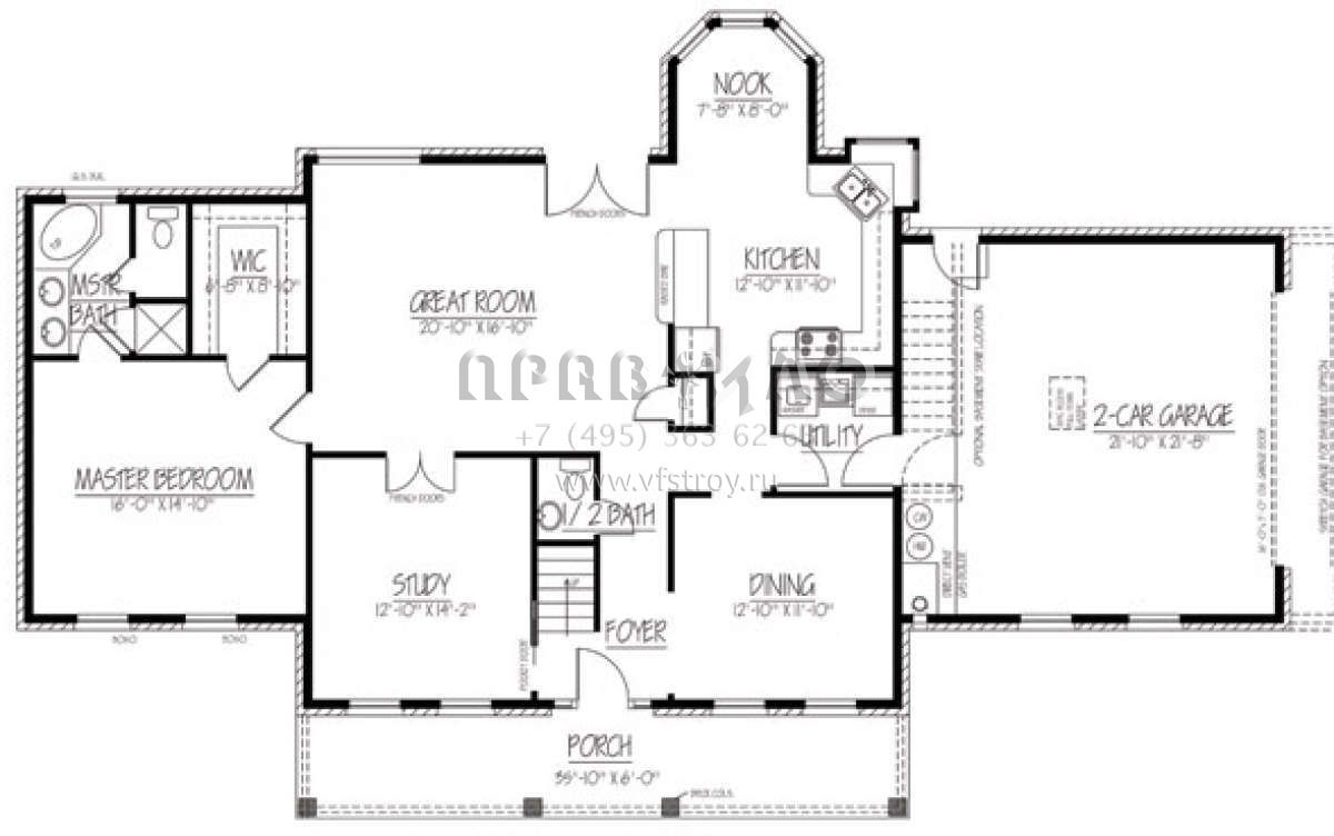 S5-234 (1754-00014) Это иностранный проект, для которого требуется адаптация под нормы, действующие в Российской Федерации. Вы видите проект дома в стиле Ранчо. В этом доме сочетаются черты сельской постройки и аскетичность лофта. Внутри жильцы смогут проводить время с максимальным комфортом. Обратим внимание, что сейчас на планировках все размеры представлены в футах. Для перевода в метры вам необходимо значение в футах умножить на 0,3048.