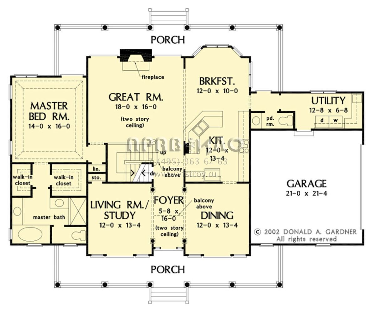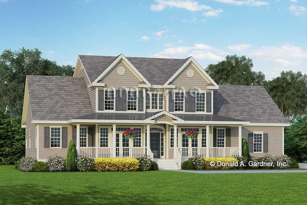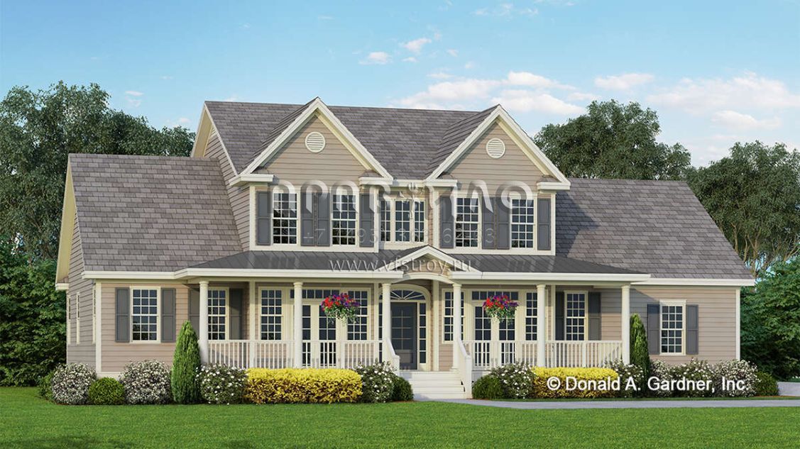 Проект двухэтажного дома с гаражом на две машины в стиле Ранчо S5-234 (2865-00336)