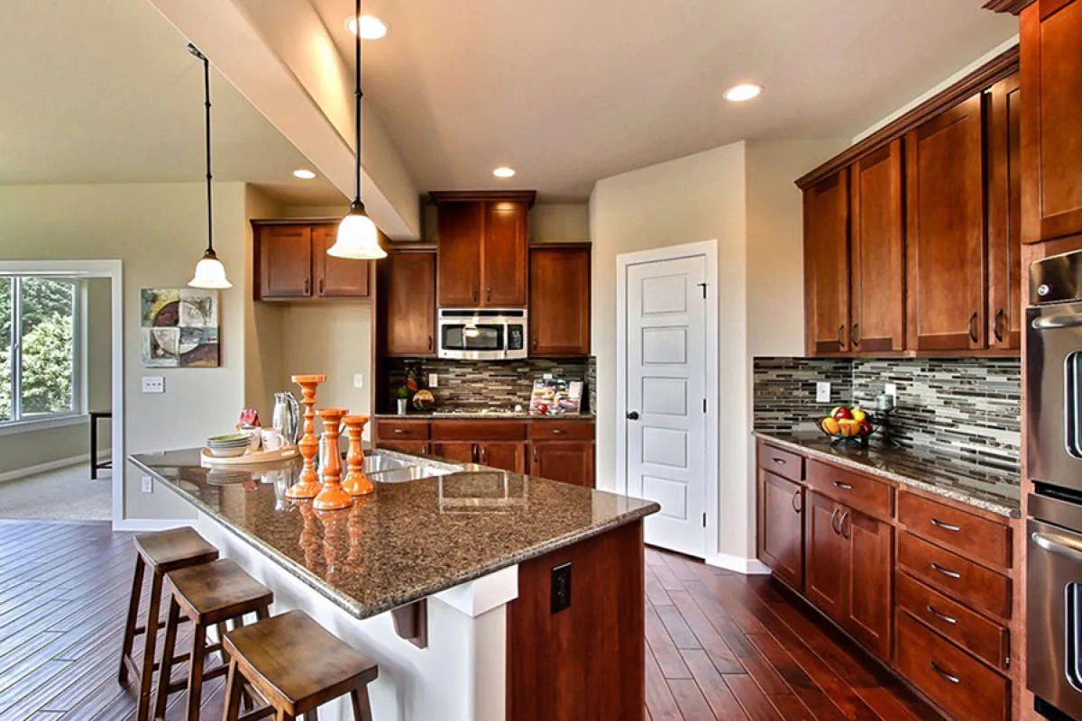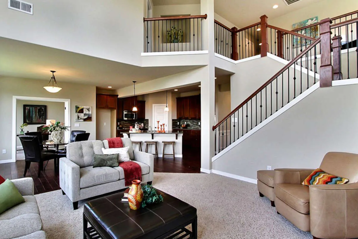 Двухэтажный проект дома позволяет рационально распорядиться площадью участка небольшого размера или узкой формы. На первом этаже находятся общие комнаты (гостиная/столовая, кухня, подсобные и технические помещения), на втором — спальни членов семьи.
