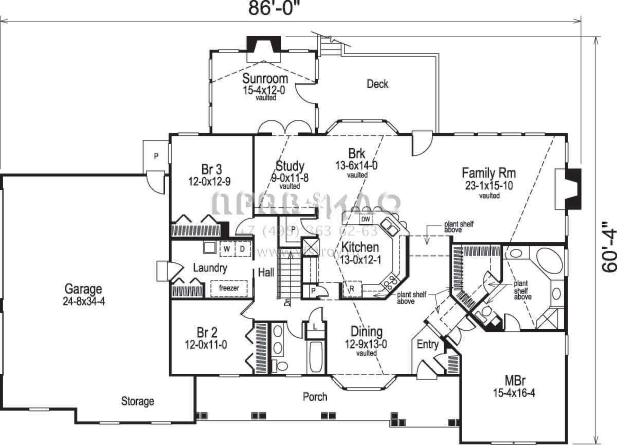 Проект одноэтажного дома с гаражом на три и более машин в стиле Ранчо S5-234 (5633-00093)