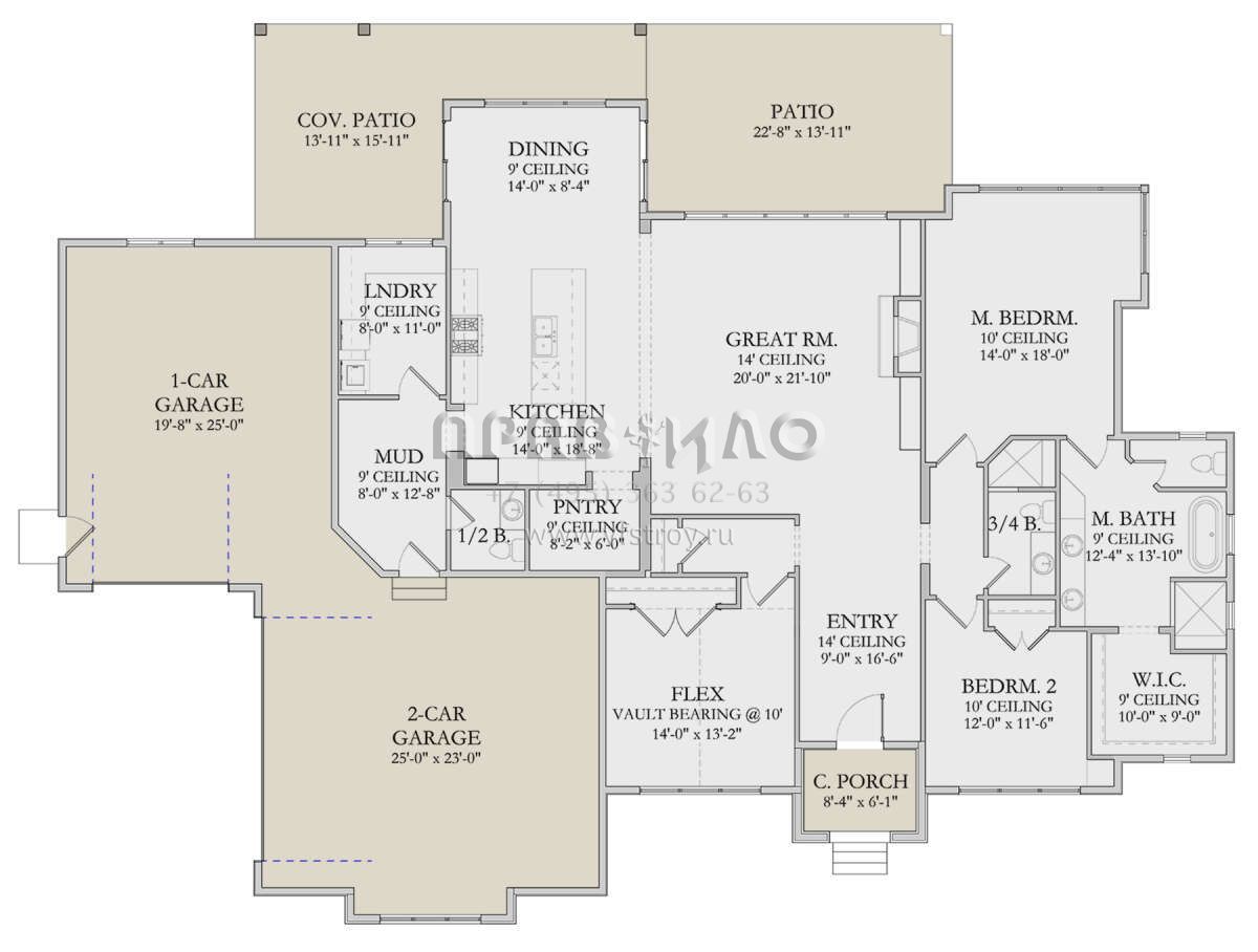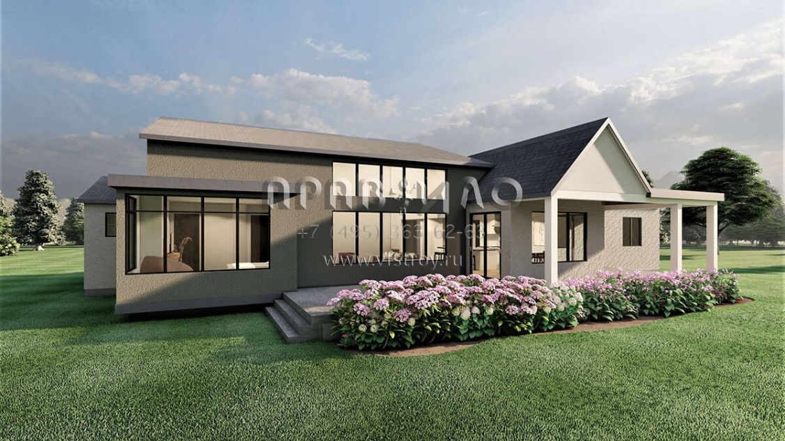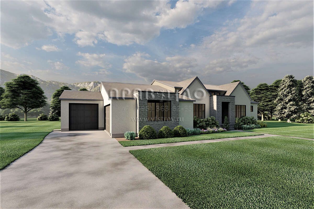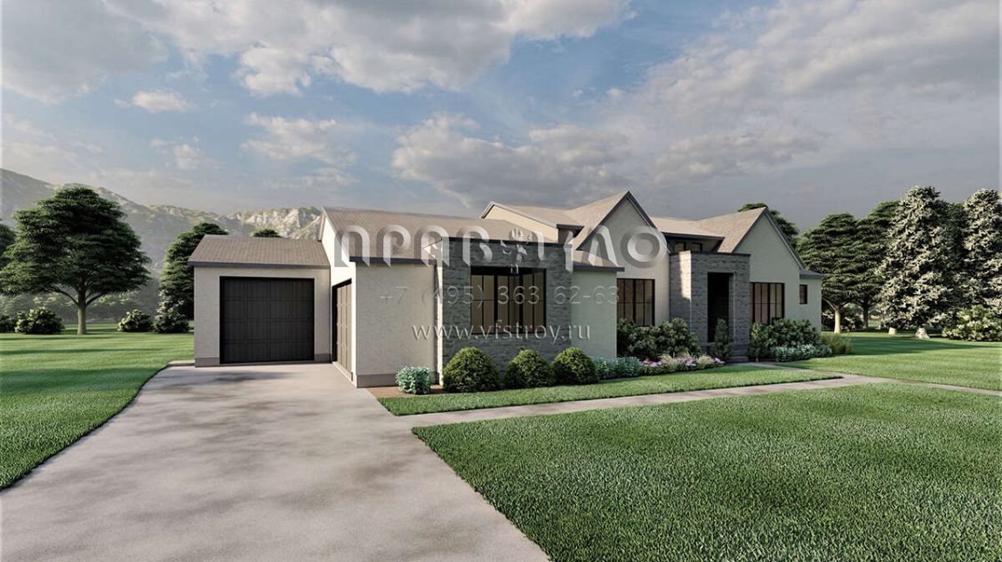 Проект одноэтажного дома с гаражом на три и более машин в современном стиле S5-234 (6422-00047)