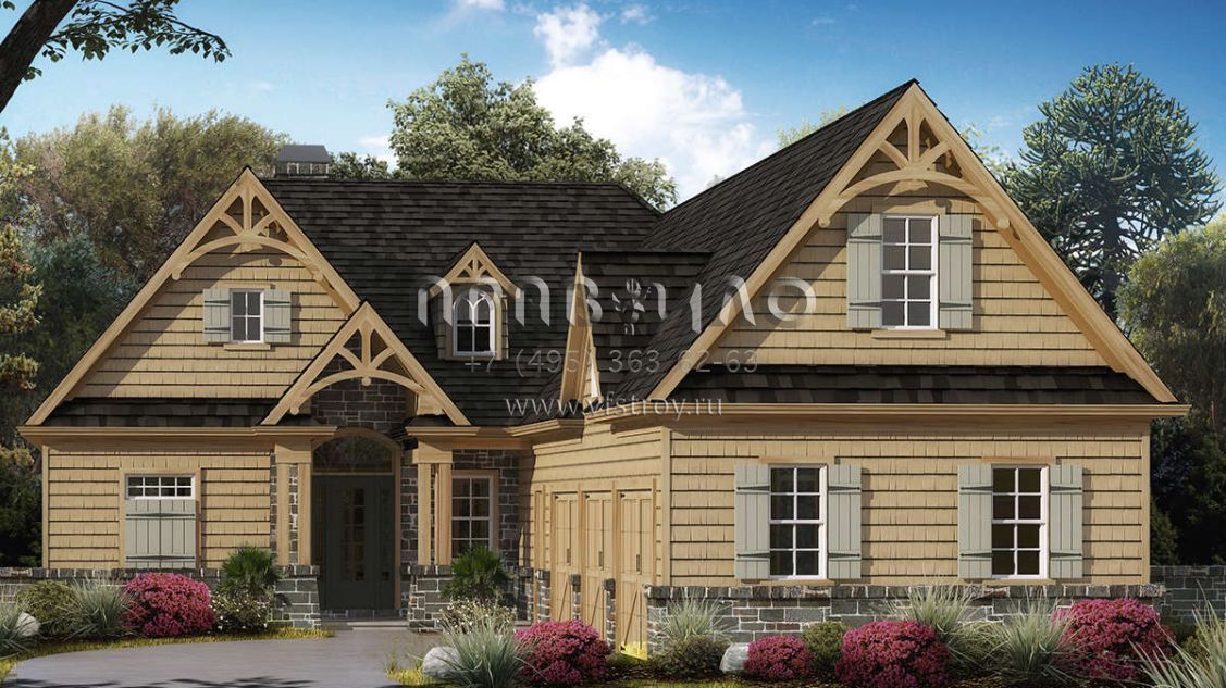 Проект двухэтажного дома с гаражом на три и более машин в американском стиле S5-234 (699-00113)
