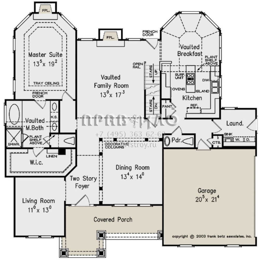 Проект двухэтажного дома с гаражом на две машины в стиле Ранчо S5-234 (8594-00344)