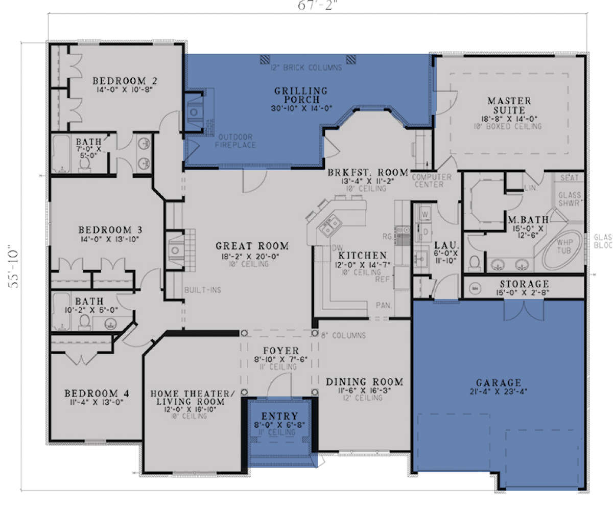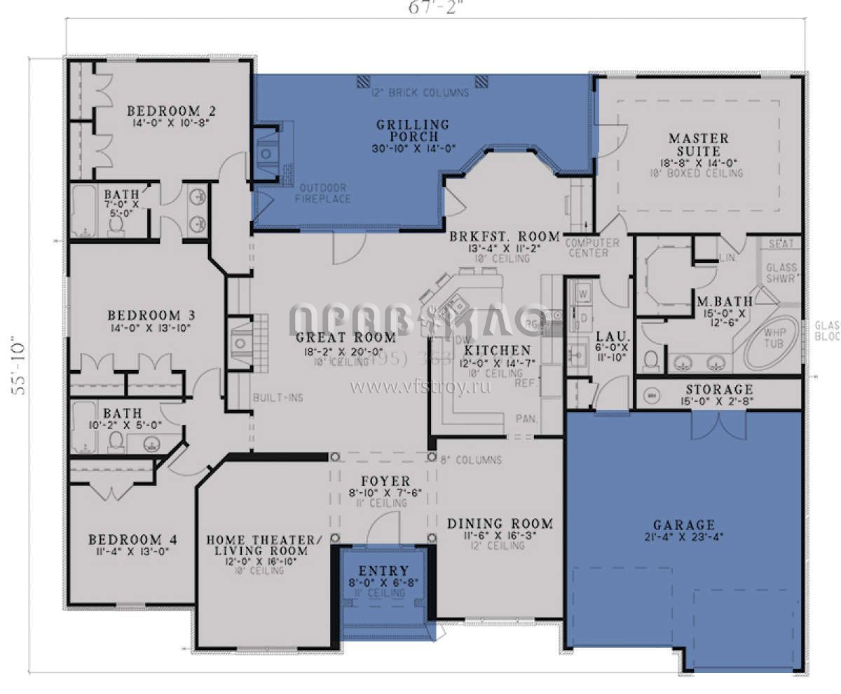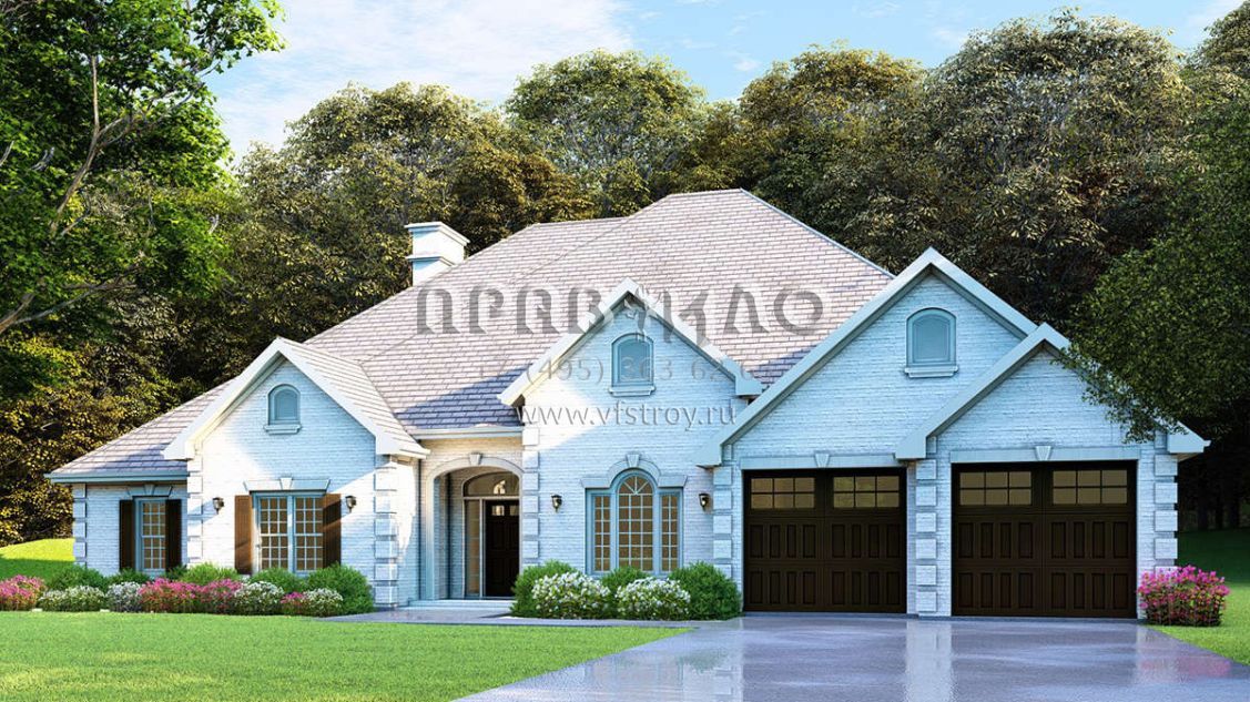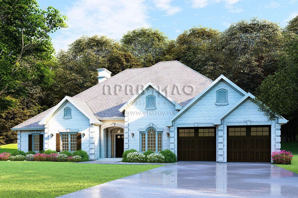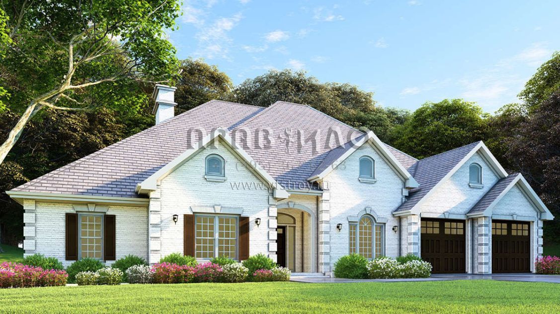 Проект одноэтажного дома с гаражом на две машины в стиле Ранчо S5-235 (110-00585)