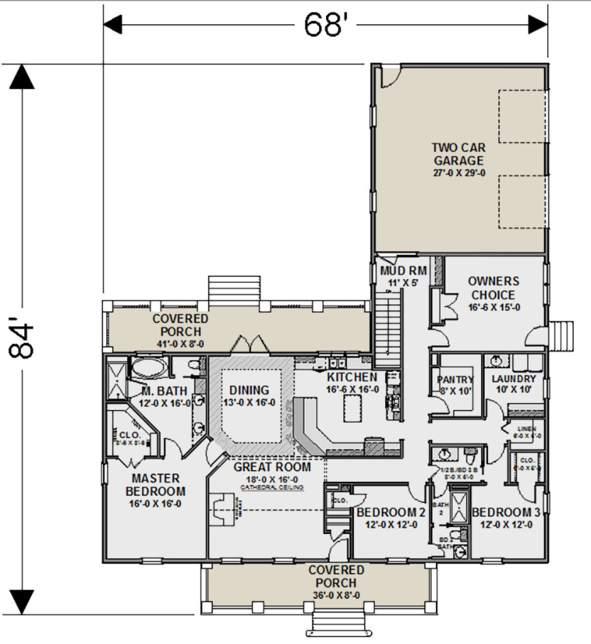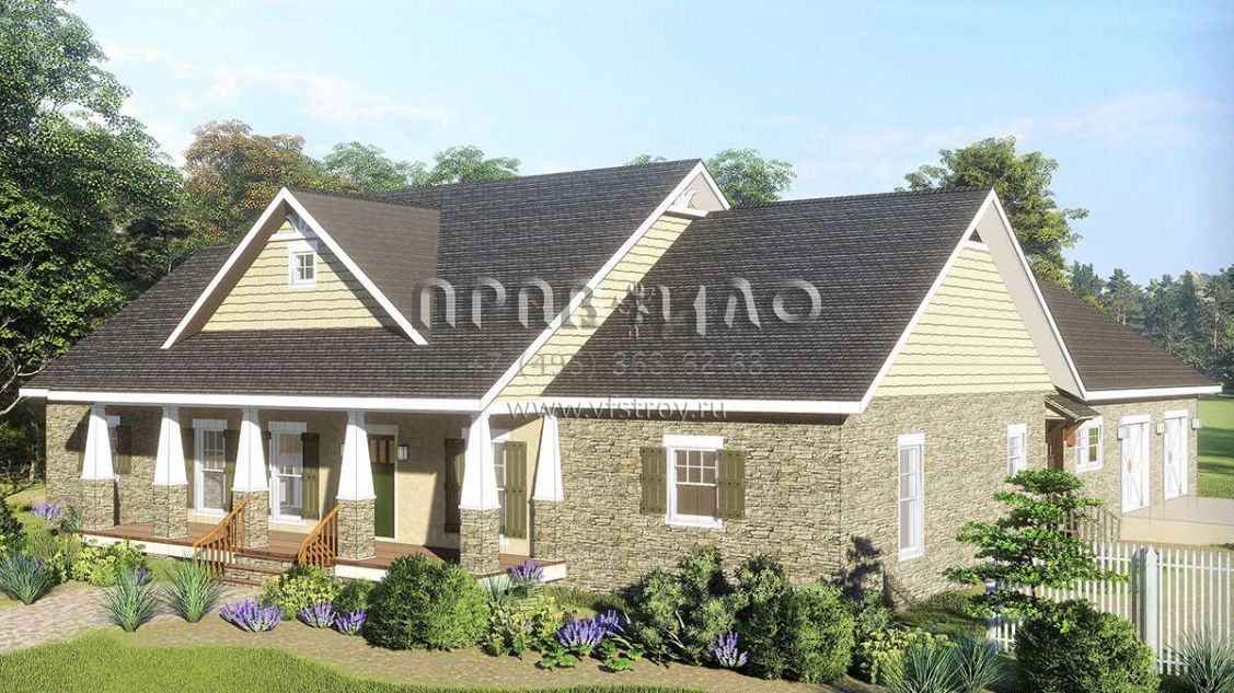 Проект одноэтажного дома с гаражом на две машины в стиле Ранчо S5-235 (1776-00101)