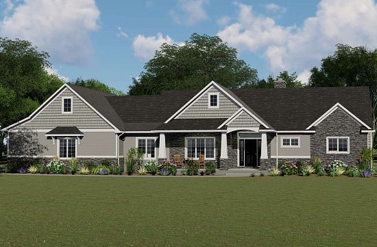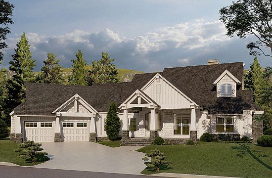 Проект одноэтажного дома с гаражом на три и более машин в американском стиле S5-235 (5631-00121)