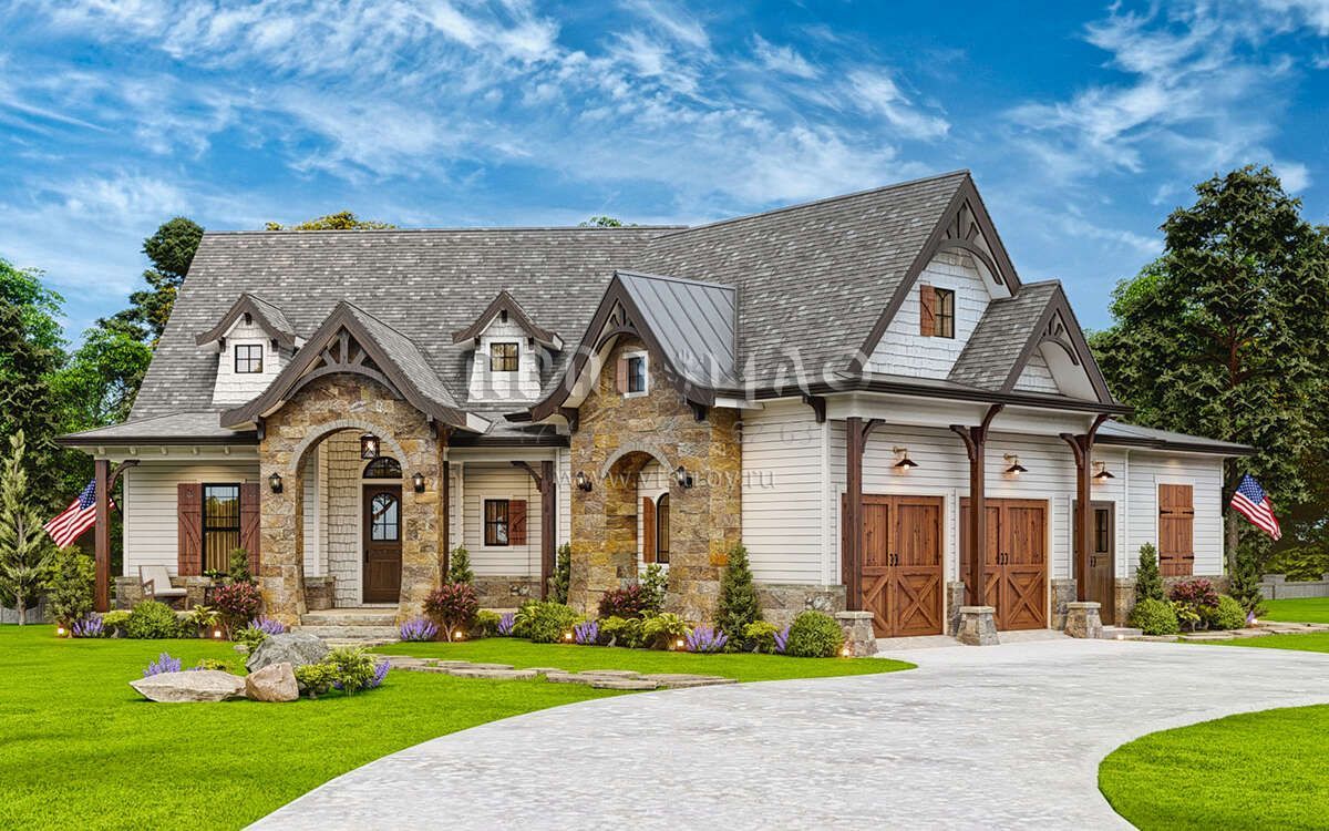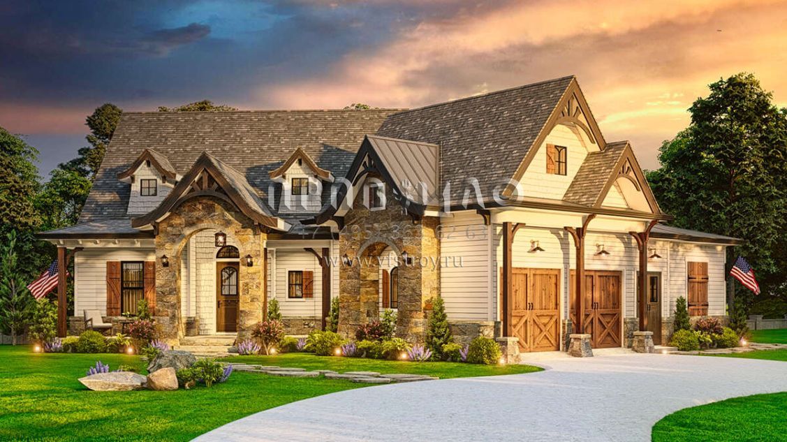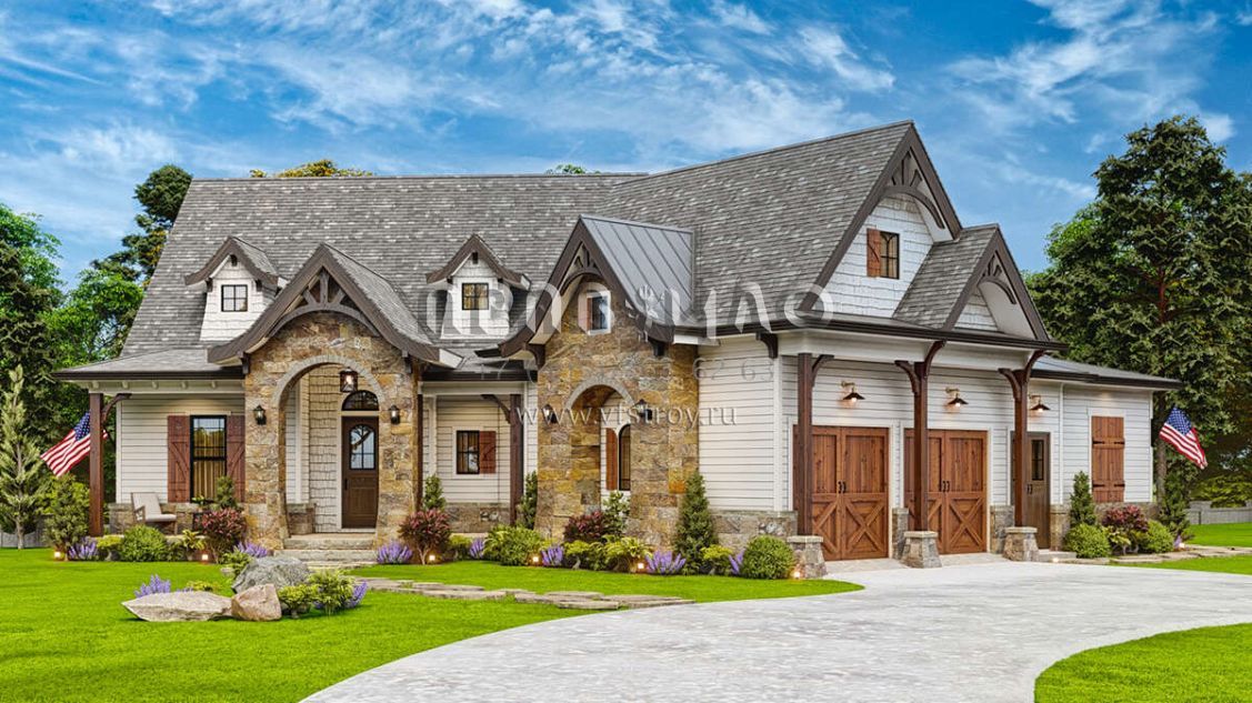 Проект одноэтажного дома с гаражом на две машины в стиле Шале S5-235 (699-00045)