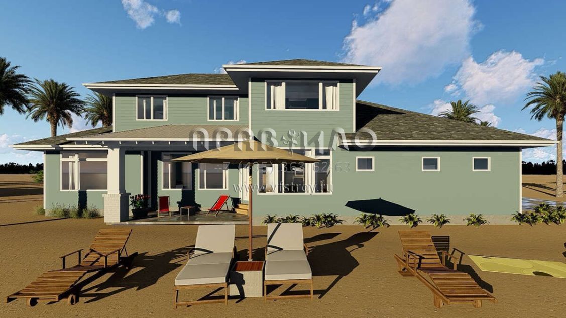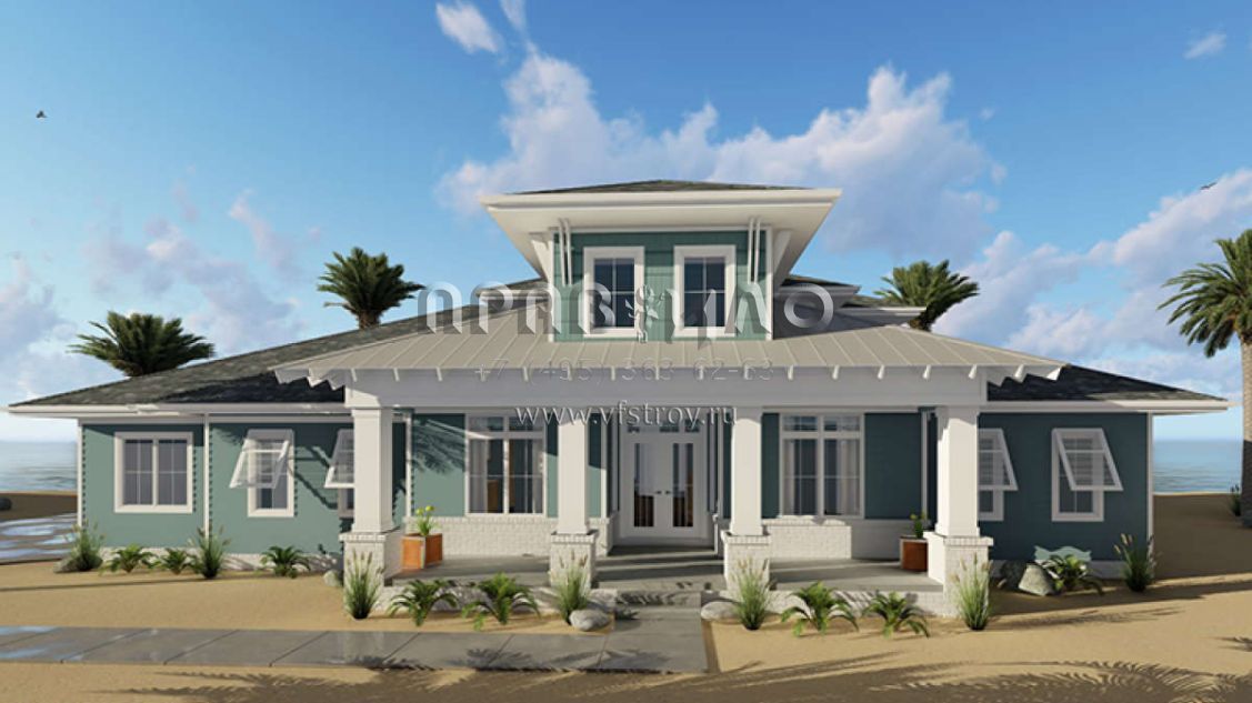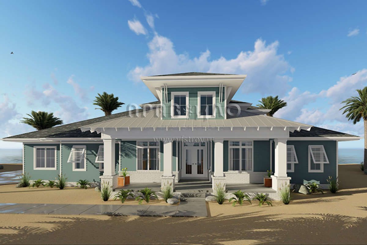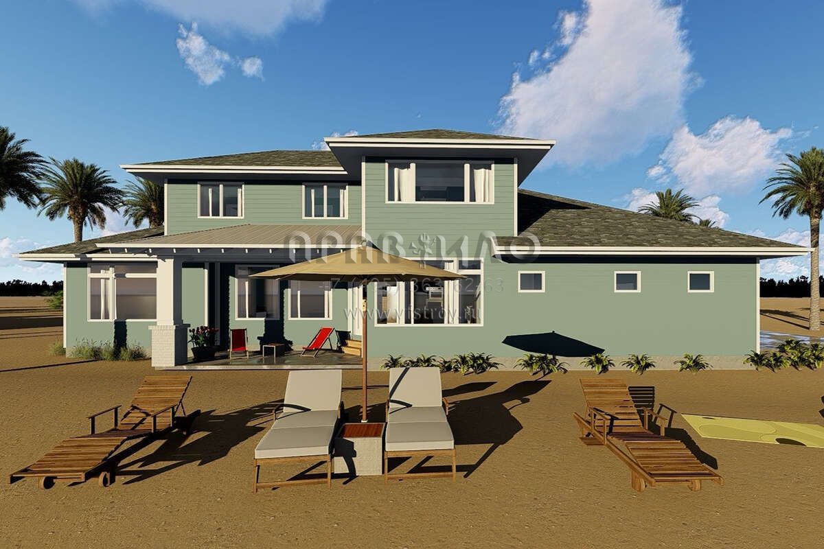 Проект двухэтажного дома с гаражом на три и более машин в прибрежном стиле S5-235 (963-00150)