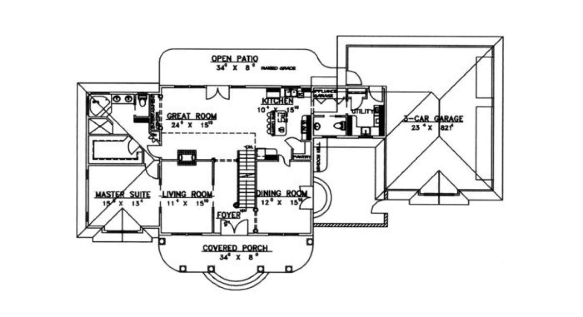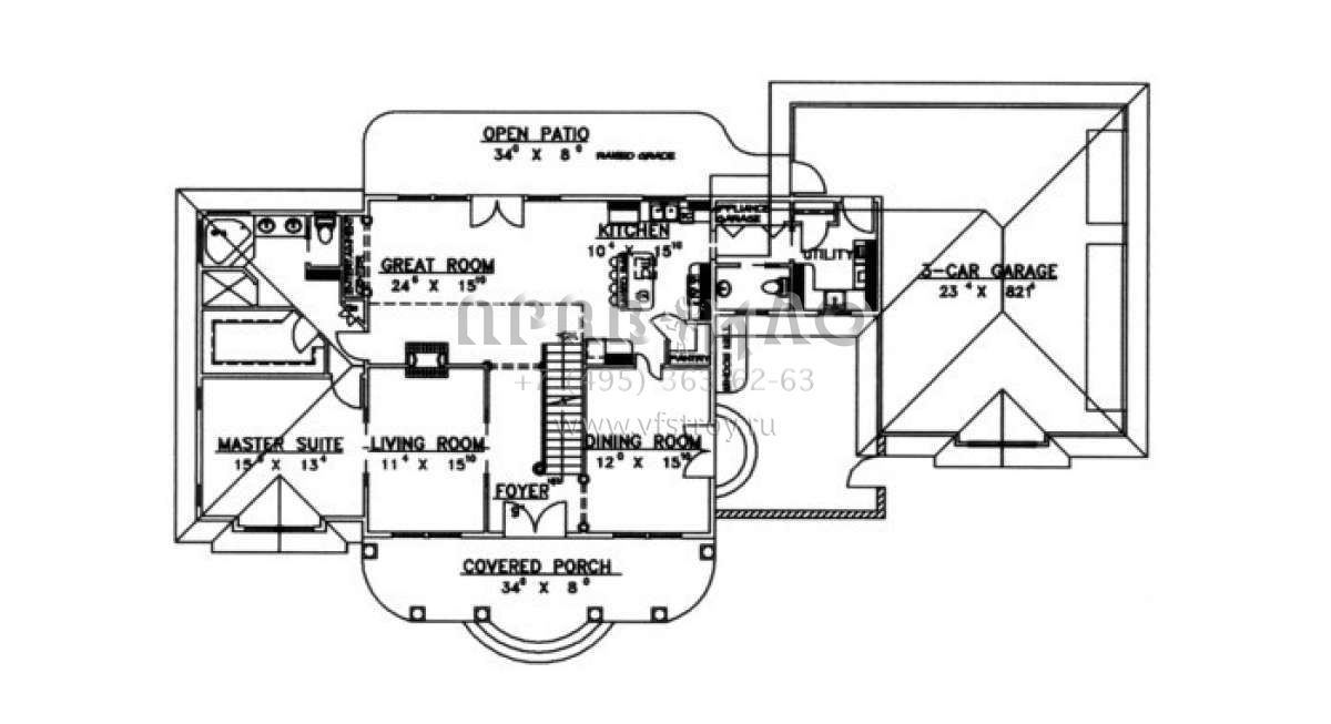 Проект двухэтажного дома с гаражом на три и более машин в стиле Ранчо S5-236 (039-00287)