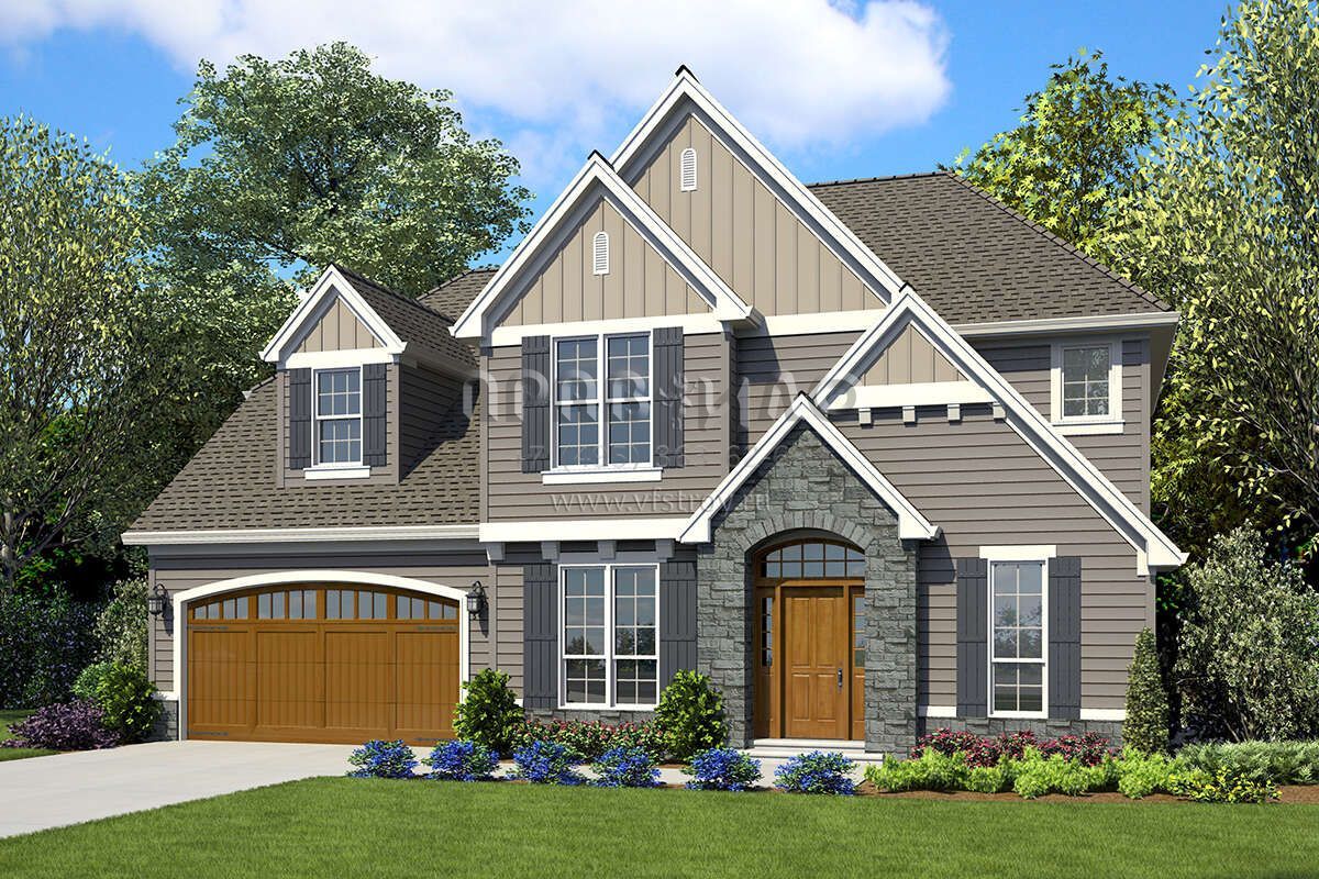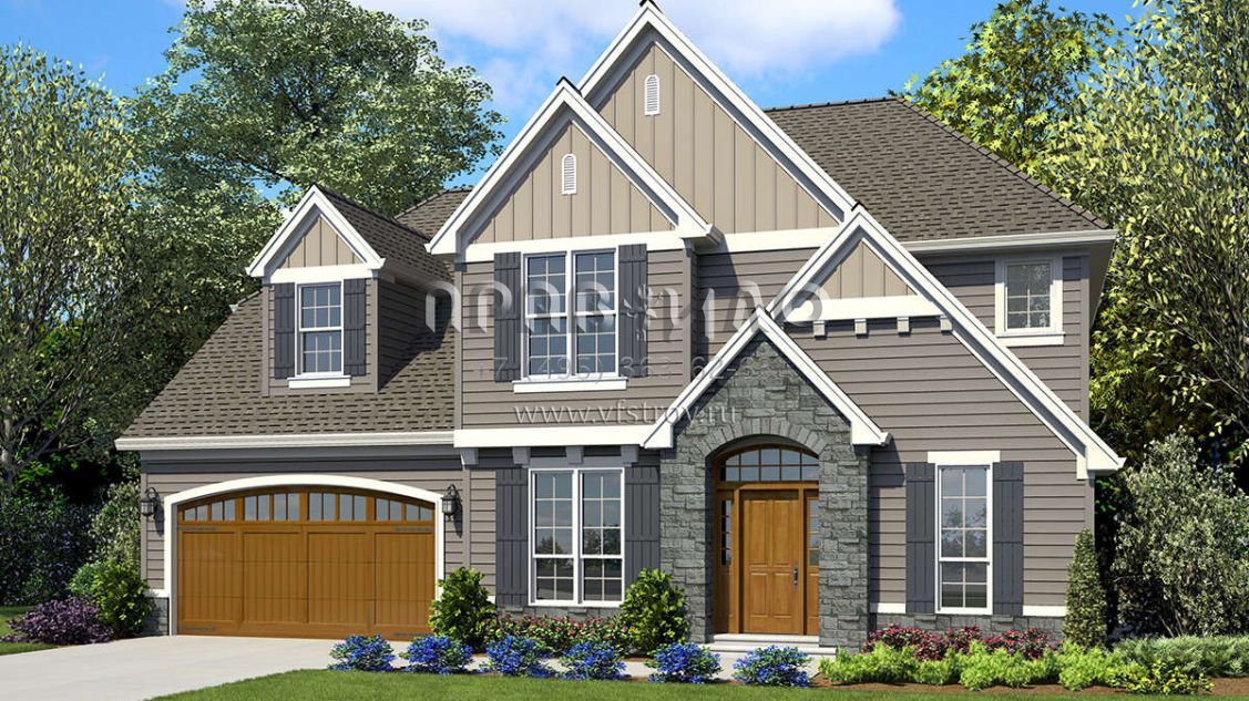 Проект двухэтажного дома с гаражом на две машины в стиле Ранчо S5-236 (2559-00860)