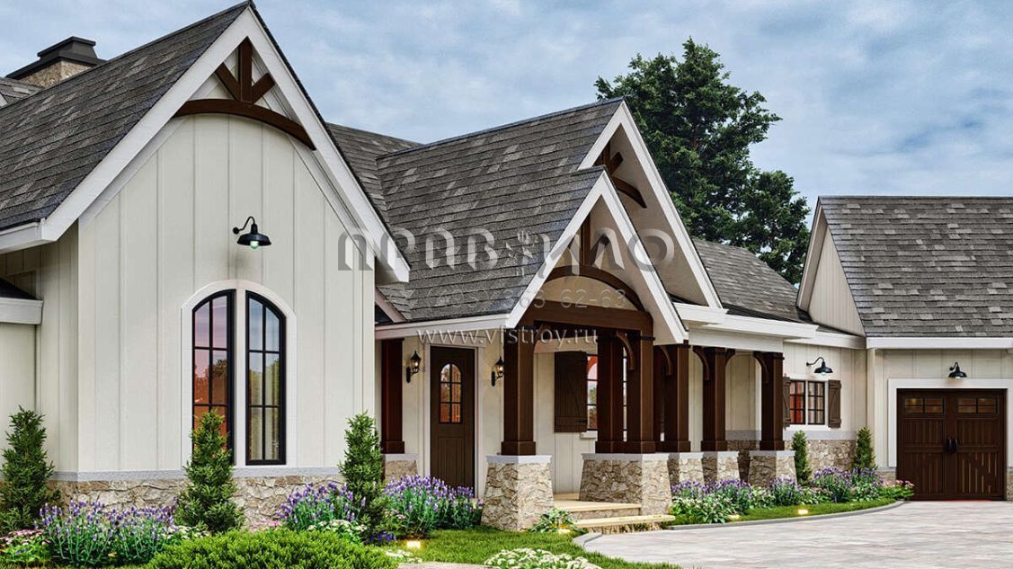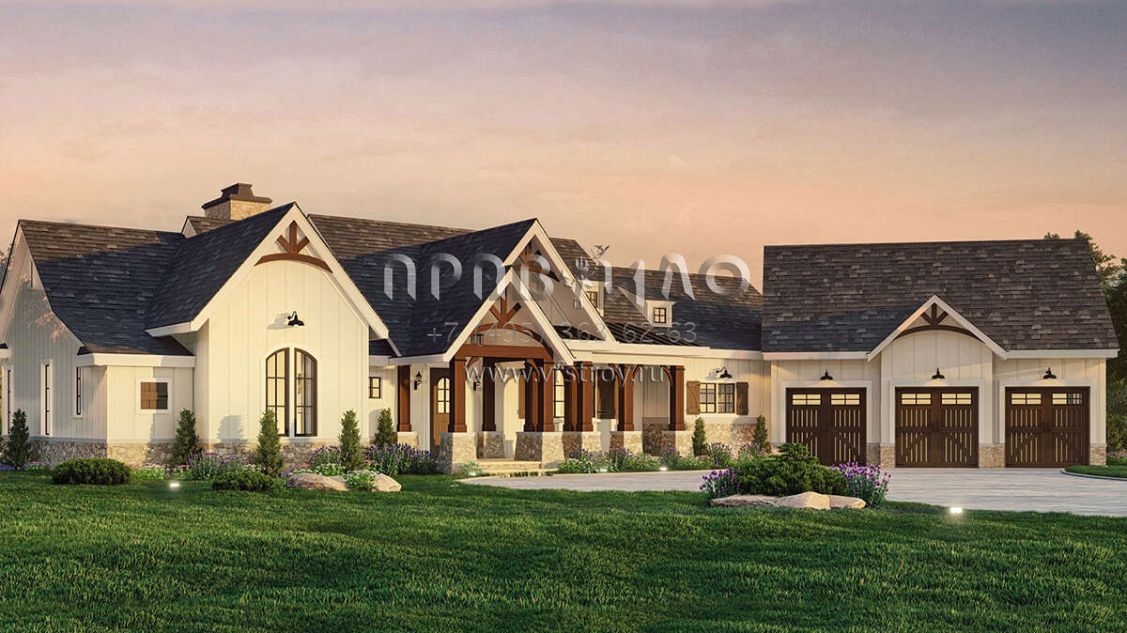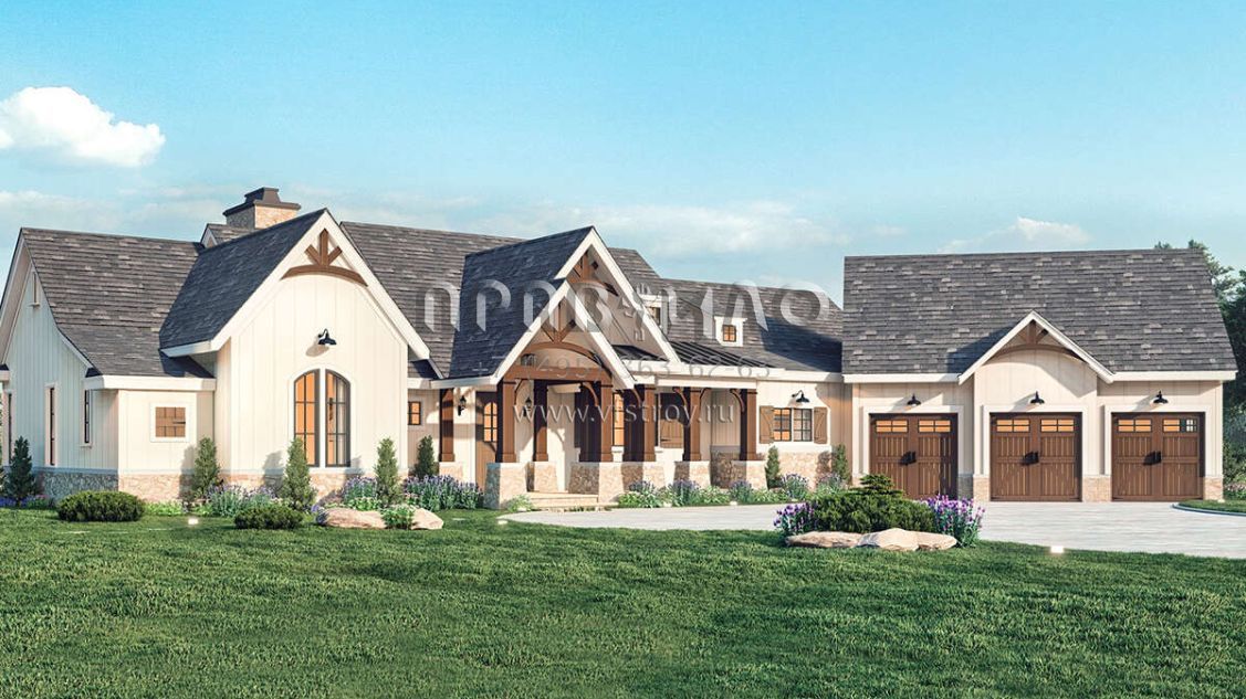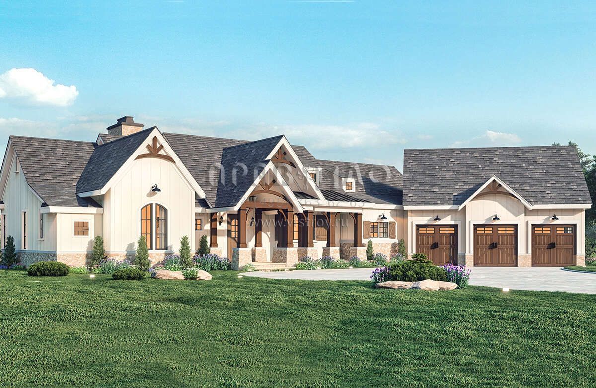 Проект одноэтажного дома с гаражом на три и более машин в американском стиле S5-236 (4195-00059)