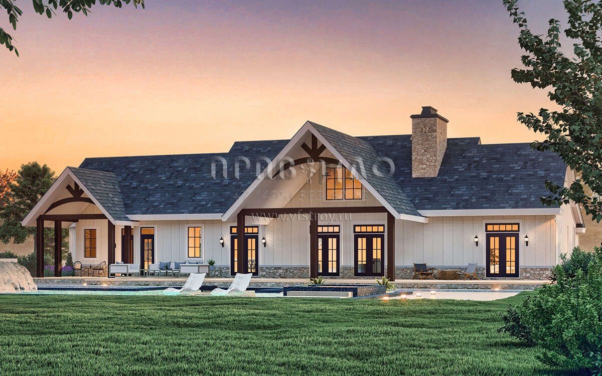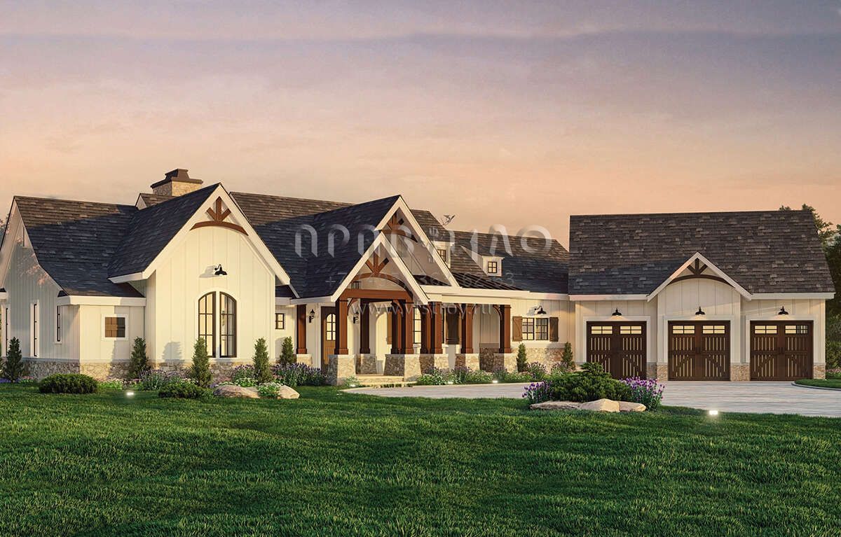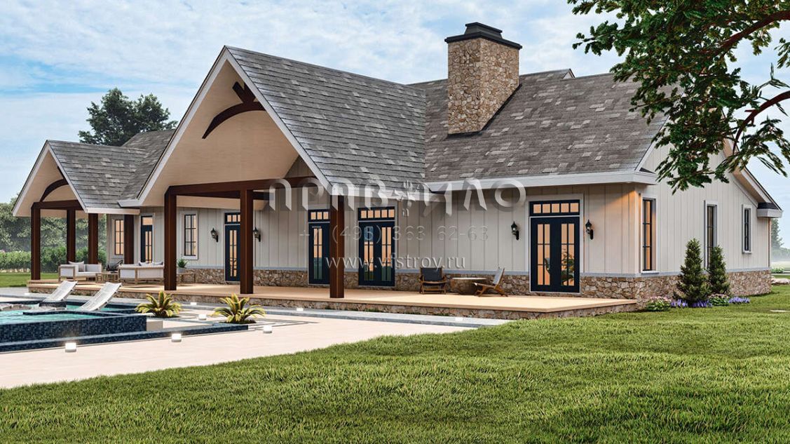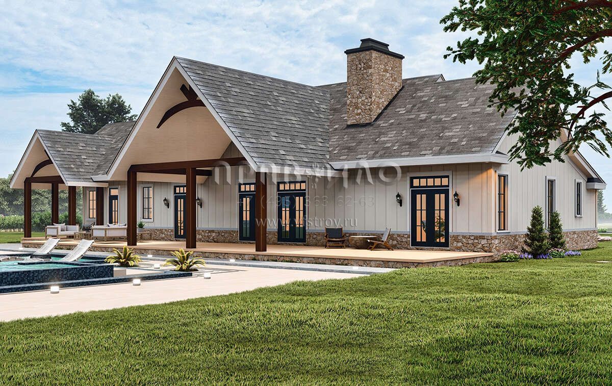 Проект одноэтажного дома с гаражом на три и более машин в американском стиле S5-236 (4195-00059)