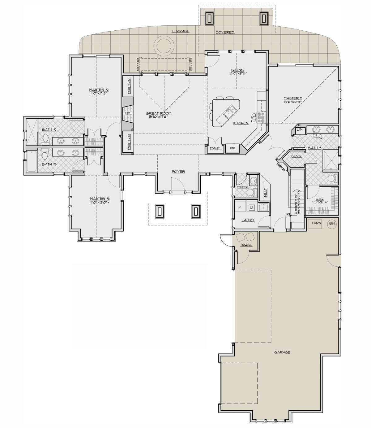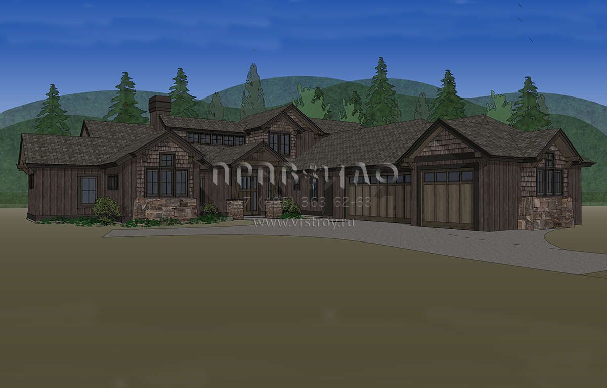 Проект двухэтажного дома с гаражом на три и более машин в стиле Шале S5-236 (5829-00040)