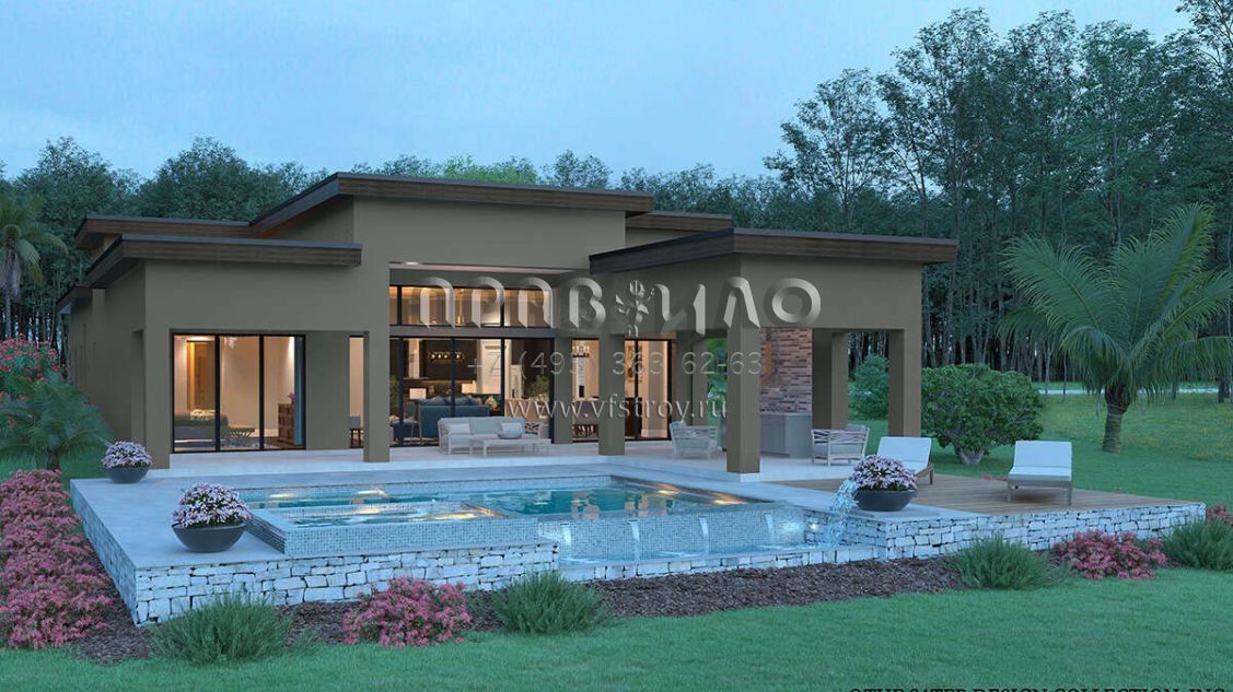 Большая площадь участка позволяет выбрать одноэтажный проект дома, особенно если в семье есть пожилые люди, инвалиды или маленькие дети.