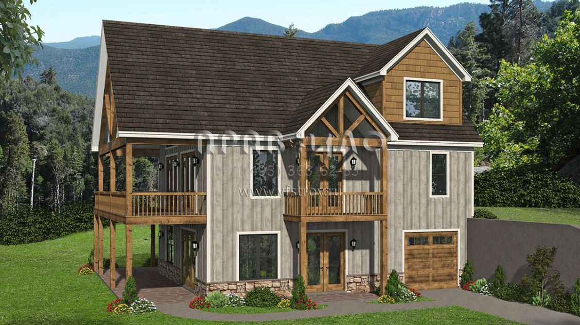 Проект двухэтажного дома с гаражом на одну машину в стиле Шале S5-236 (940-00324)