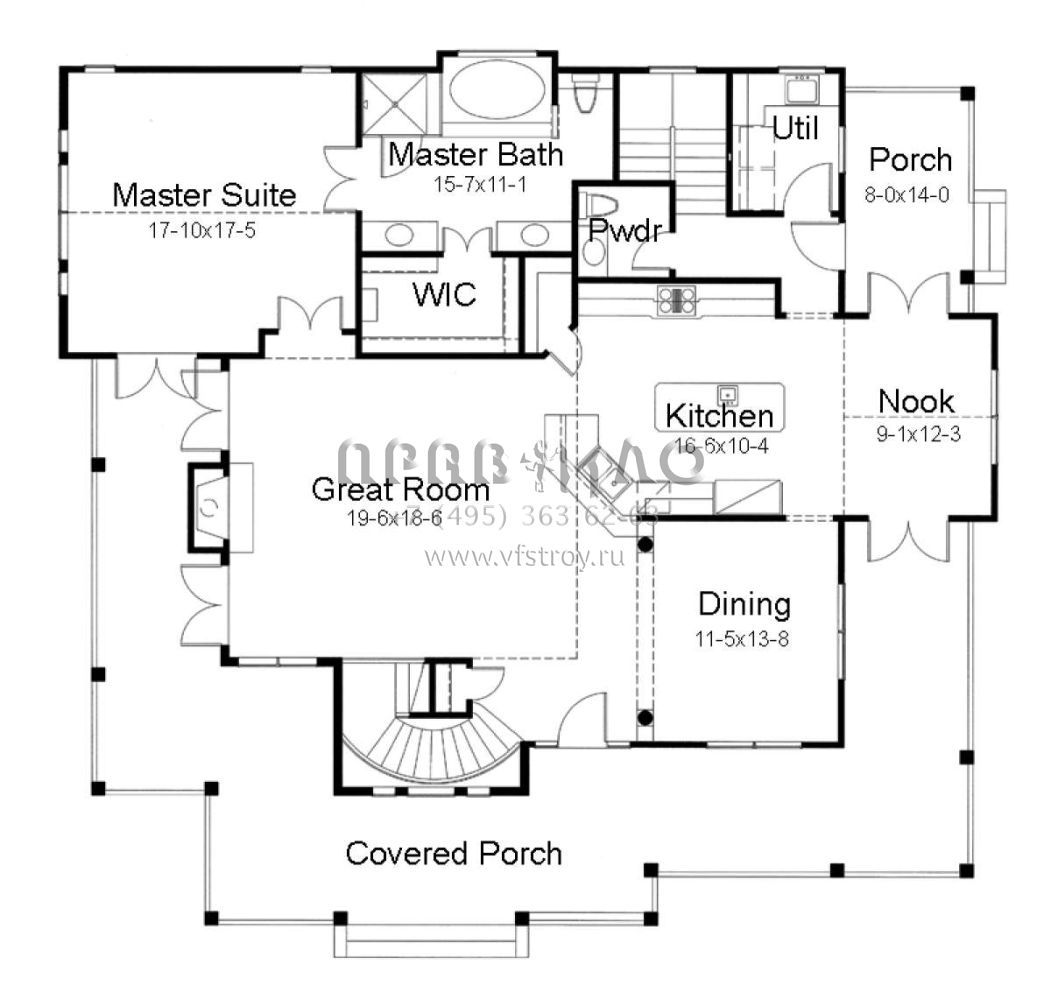 S5-236 (9401-00019) Это иностранный проект, для которого требуется адаптация под нормы, действующие в Российской Федерации. Вы видите проект дома в стиле Ранчо. В этом доме сочетаются черты сельской постройки и аскетичность лофта. Внутри жильцы смогут проводить время с максимальным комфортом. Обратим внимание, что сейчас на планировках все размеры представлены в футах. Для перевода в метры вам необходимо значение в футах умножить на 0,3048.
