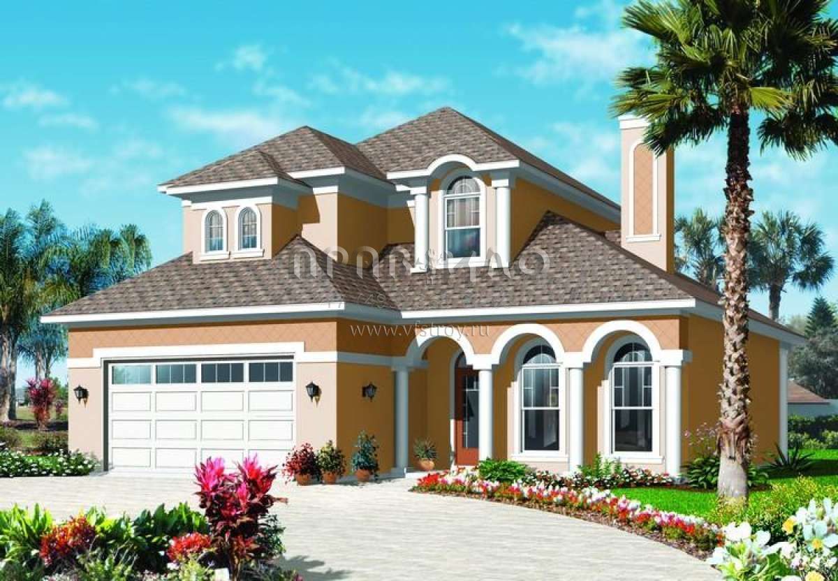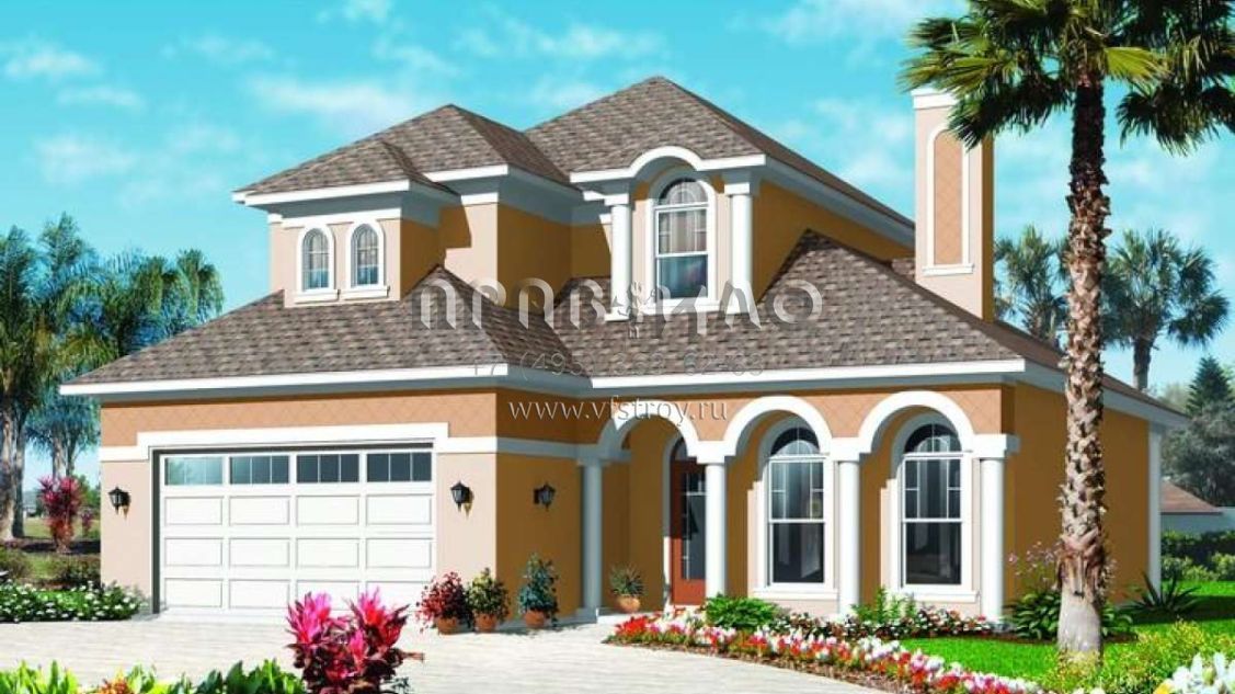 Проект двухэтажного дома с гаражом на две машины в прибрежном стиле S5-237 (034-00800)