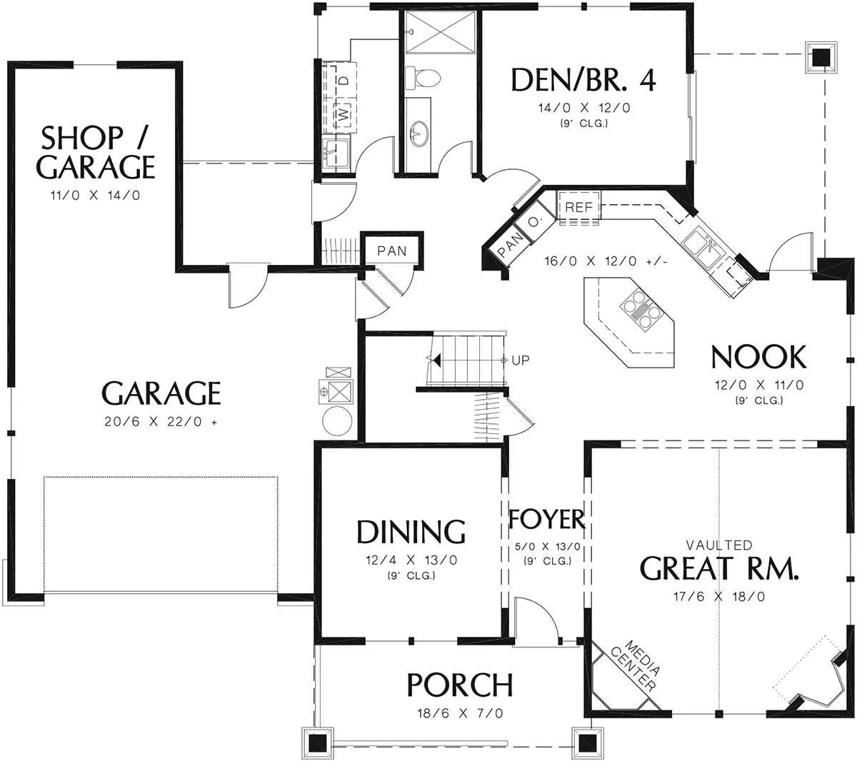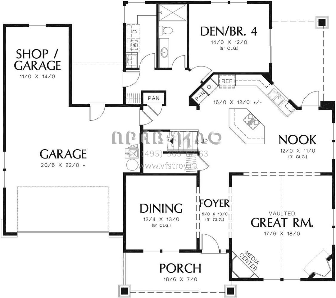 S5-237 (2559-00342) Это иностранный проект, для которого требуется адаптация под нормы, действующие в Российской Федерации. Вы видите проект дома в американском стиле. В этом доме сочетаются черты сельской постройки и аскетичность лофта. Внутри жильцы смогут проводить время с максимальным комфортом. Обратим внимание, что сейчас на планировках все размеры представлены в футах. Для перевода в метры вам необходимо значение в футах умножить на 0,3048.