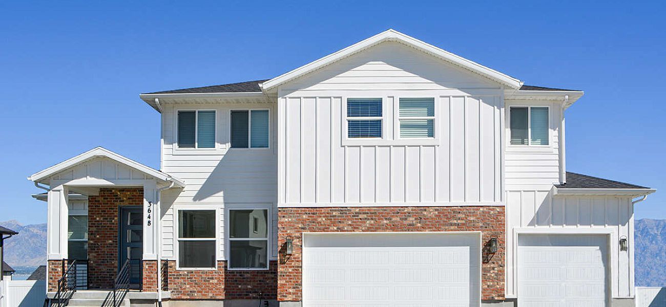 Двухэтажный проект дома позволяет рационально распорядиться площадью участка небольшого размера или узкой формы. На первом этаже находятся общие комнаты (гостиная/столовая, кухня, подсобные и технические помещения), на втором — спальни членов семьи.