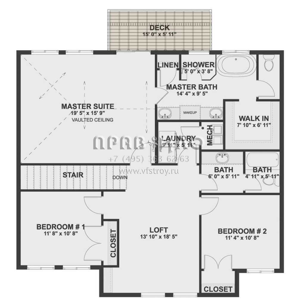 S5-237 (2802-00106) Это иностранный проект, для которого требуется адаптация под нормы, действующие в Российской Федерации. Вы видите проект дома в современном стиле. В этом доме сочетаются черты сельской постройки и аскетичность лофта. Внутри жильцы смогут проводить время с максимальным комфортом. Обратим внимание, что сейчас на планировках все размеры представлены в футах. Для перевода в метры вам необходимо значение в футах умножить на 0,3048.