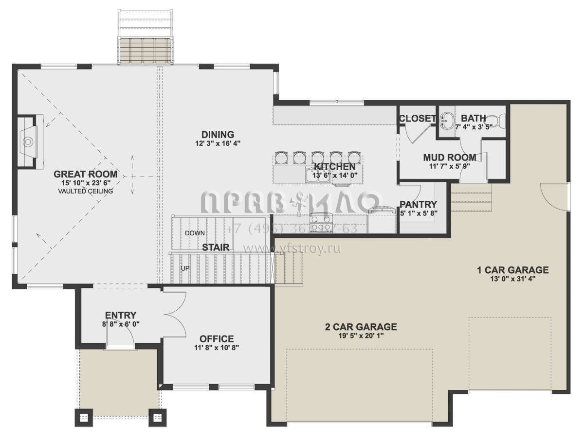 Поскольку этот проект разрабатывался иностранными архитекторами, для строительства дома требуется переработка проекта под действующие в России нормы. Данные визуализации проекта представлены для ознакомления с концепцией проекта. Проект разработан американским архитектурным бюро и представлен America's Best House Plans.